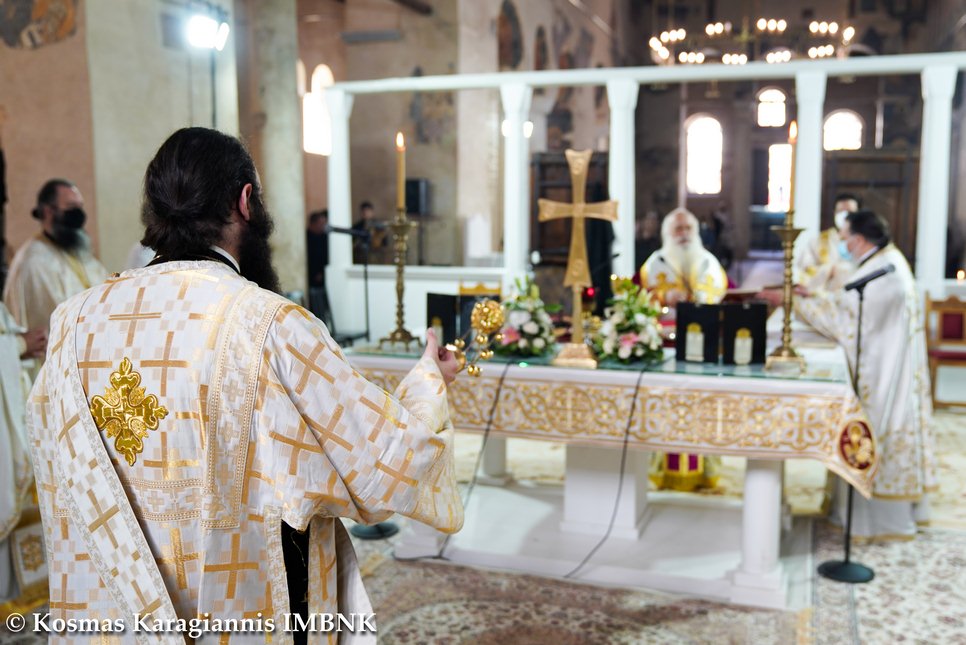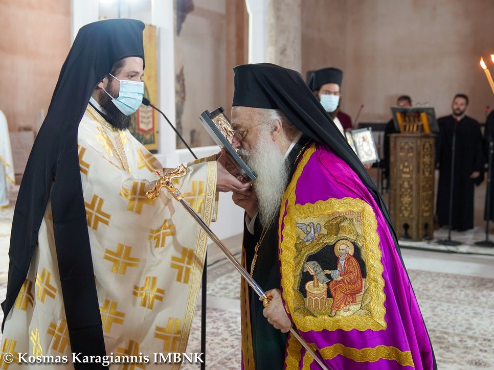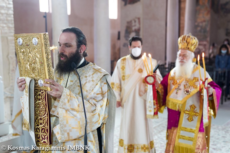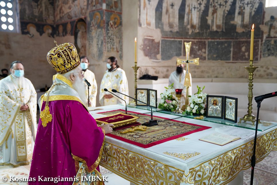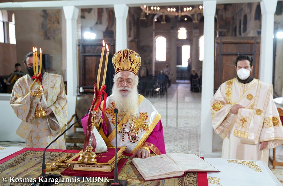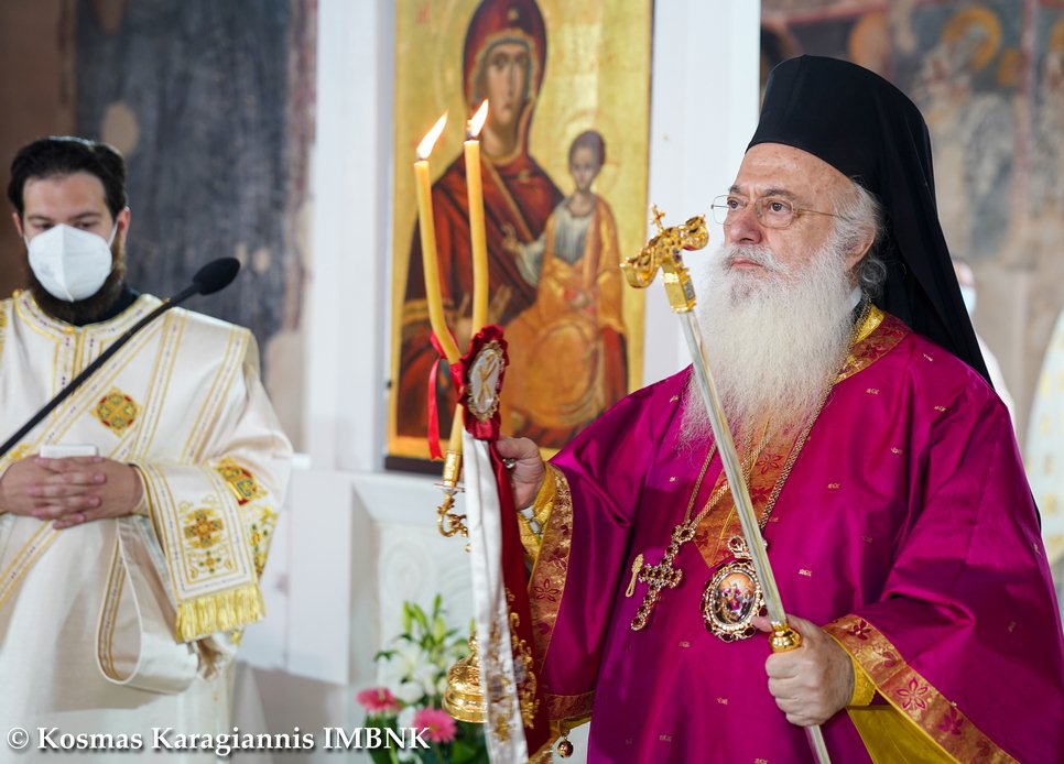 Γι᾽ αὐτό καί σήμερα, πού ἡ Ἐκκλησία μας ἑορτάζει τήν ἱερά μνήμη του, τόν τιμοῦμε ἐδῶ στήν παλαιά Μητρόπολη, ὅπου καί ἐκεῖνος ἱερουργοῦσε προσφέροντας τήν ἀναίμακτο θυσία, ἀλλά τελικά καί τή θυσία τοῦ ἴδιου τοῦ ἑαυτοῦ του γιά χάρη τοῦ Χριστοῦ.
