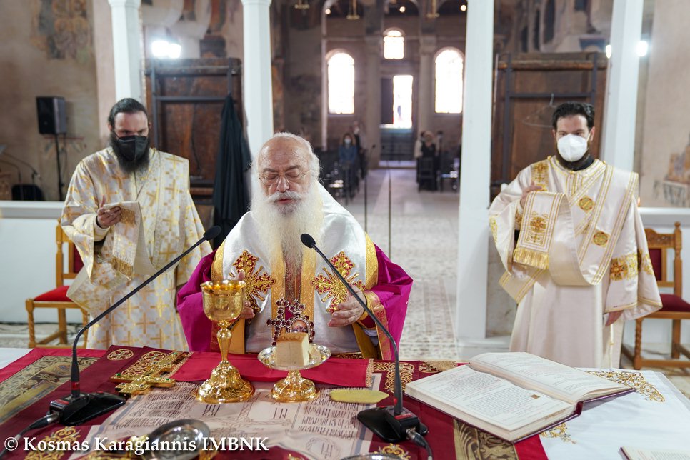 Γι᾽ αὐτό καί σήμερα, πού ἡ Ἐκκλη­σία μας ἑορτάζει τήν ἱερά μνήμη του, τόν τιμοῦμε ἐδῶ στήν παλαιά Μητρόπολη, ὅπου καί ἐκεῖνος ἱερουρ­γοῦσε προσφέροντας τήν ἀναίμακτο θυσία, ἀλλά τελικά καί τή θυσία τοῦ ἴδιου τοῦ ἑαυτοῦ του γιά χάρη τοῦ Χριστοῦ.