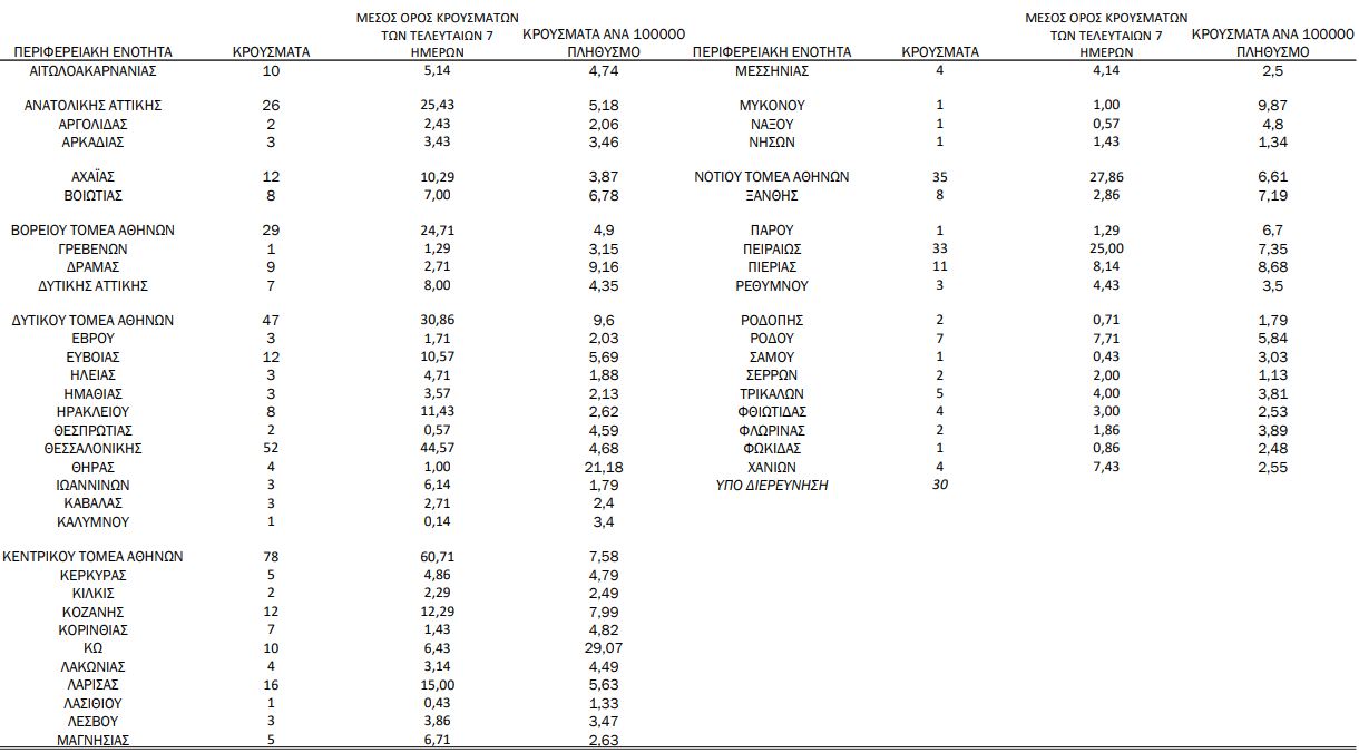 Με βάση τα επιβεβαιωμένα κρούσματα των τελευταίων 7 ημερών, 24 θεωρούνται σχετιζόμενα με ταξίδι από το εξωτερικό και 1.089 είναι σχετιζόμενα με ήδη γνωστό κρούσμα.
