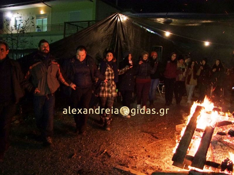 Με φωτιές, άφθονο κρασί, λουκάνικα και πολύ χορό, αναβίωσε και φέτος το βράδυ της 23ης Δεκεμβρίου στα Τρίκαλα Ημαθίας το έθιμο »Κόλιαντα».