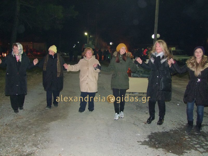 Με φωτιές, άφθονο κρασί, λουκάνικα και πολύ χορό, αναβίωσε και φέτος το βράδυ της 23ης Δεκεμβρίου στα Τρίκαλα Ημαθίας το έθιμο »Κόλιαντα».