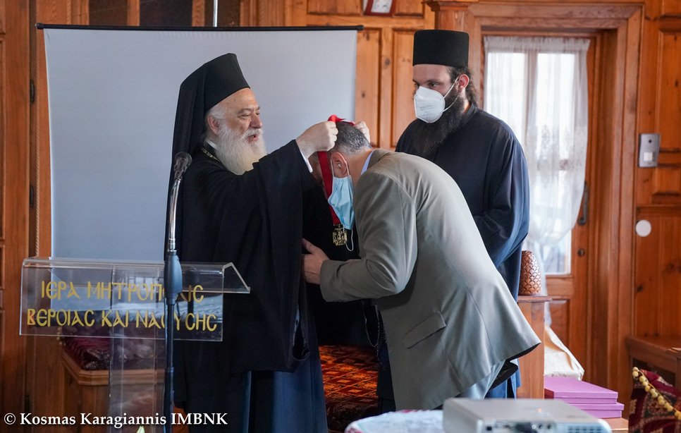 Στο τέλος ο Σεβασμιώτατος Μητροπολίτης μας κ. Παντελεήμων απένειμε το χρυσό μετάλλιο του Αργυρού Ιωβηλαίου των Παυλείων στον Θεοφιλέστατο Επίσκοπο Margveti και Ubisa κ. Μελχισεδέκ, ο οποίος συμμετέχει στις εργασίες του συνεδρίου καθώς και στον Δρ. κ. Κωνσταντίνο Αθανασόπουλου (Open University UK), υπό την οργανωτική ευθύνη του οποίου πραγματοποιείται το συνέδριο, ενώ δεν παρέλειψε να ευχαριστήσει όλους τους συμμετέχοντες και να μοιράσει σε όλους ένα μικρό ενθύμιο από την επίσκεψη τους στην Αποστολική Μητρόπολη της Βεροίας.