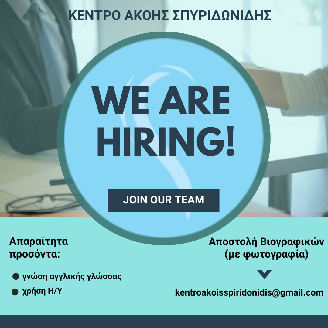 Το Κέντρο Ακοής ΣΠΥΡΙΔΩΝΙΔΗΣ στη Βετσοπούλου 82 στην Αλεξάνδρεια αναζητεί νέο συνεργάτη.