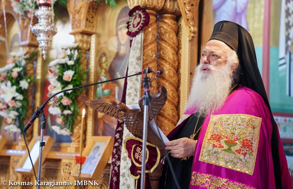 O Σεβασμιώτατος στην ομιλία του ανέφερε μεταξύ άλλων: «Κυρίων τόν Κύριον καί βασιλέα Χριστόν, ἐξ ὅλης ἠγάπησας, Κυριακή, τῆς ψυχῆς, καί χαίρουσα ἤθλησας».