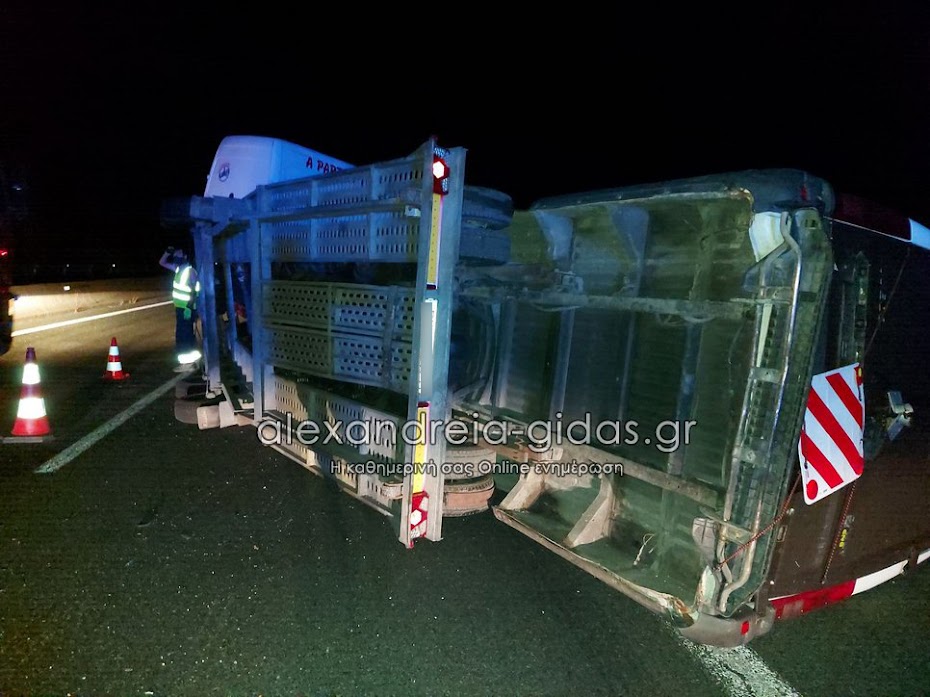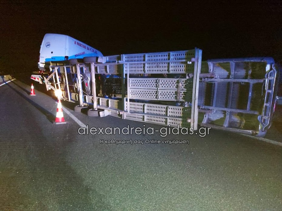 Συγκεκριμένα, μετά τις 4 τα ξημερώματα, λίγο μετά την έξοδο της Βέροιας με κατεύθυνση προς τη Θεσσαλονίκη, οδηγός φορτηγού έχασε τον έλεγχο του οχήματός του.