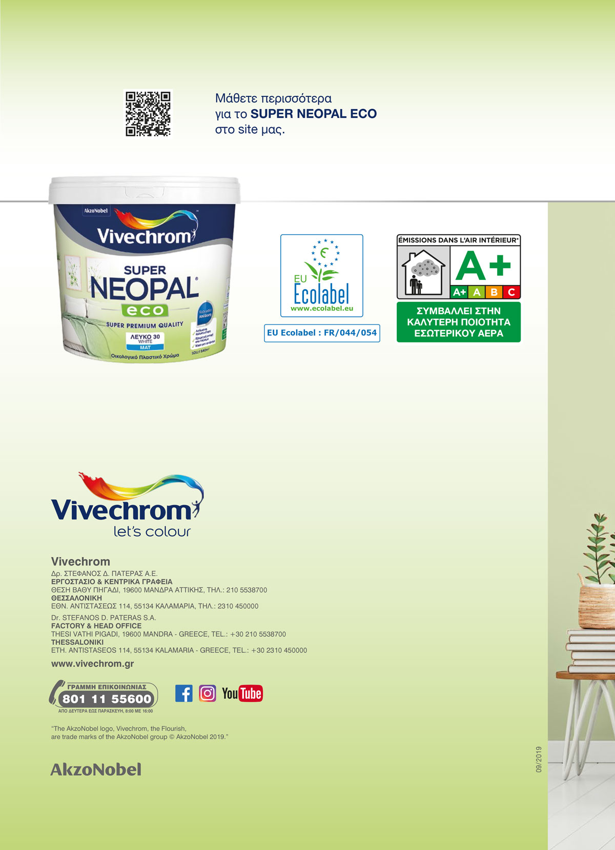 Στις ΧΡΩΜΟΣΥΝΘΕΣΕΙΣ ΣΤΑΜΠΟΥΛΗΣ θα βρείτε το SUPER NEOPAL ECO οικολογικό ματ πλαστικό χρώμα ασυναγώνιστης ποιότητας. Είναι πιστοποιημένο από το AFNOR και πληροί τα κριτήρια του οικολογικού σήματος Ecolabel της Ε.Ε. Δεν περιέχει αμμωνία ούτε επικίνδυνες ουσίες όπως βαρέα μέταλλα, ελεύθερη φορμαλδεΰδη, αρωματικούς υδρογονάνθρακες και είναι φιλικό προς το χρήστη και το περιβάλλον.