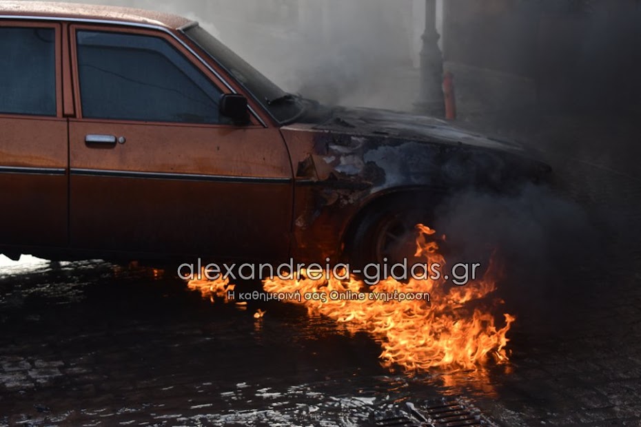 Ι.Χ. αυτοκίνητο τυλίχθηκε στις φλόγες το απόγευμα της Τετάρτης 28 Ιουλίου 2021 στην πόλη της Αλεξάνδρειας.