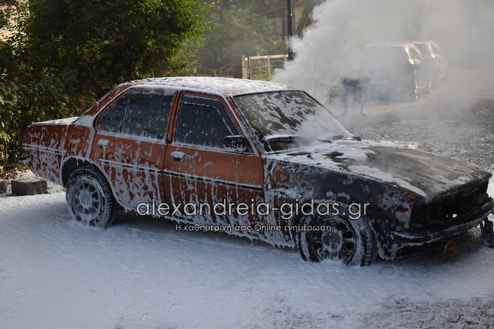Ι.Χ. αυτοκίνητο τυλίχθηκε στις φλόγες το απόγευμα της Τετάρτης 28 Ιουλίου 2021 στην πόλη της Αλεξάνδρειας.