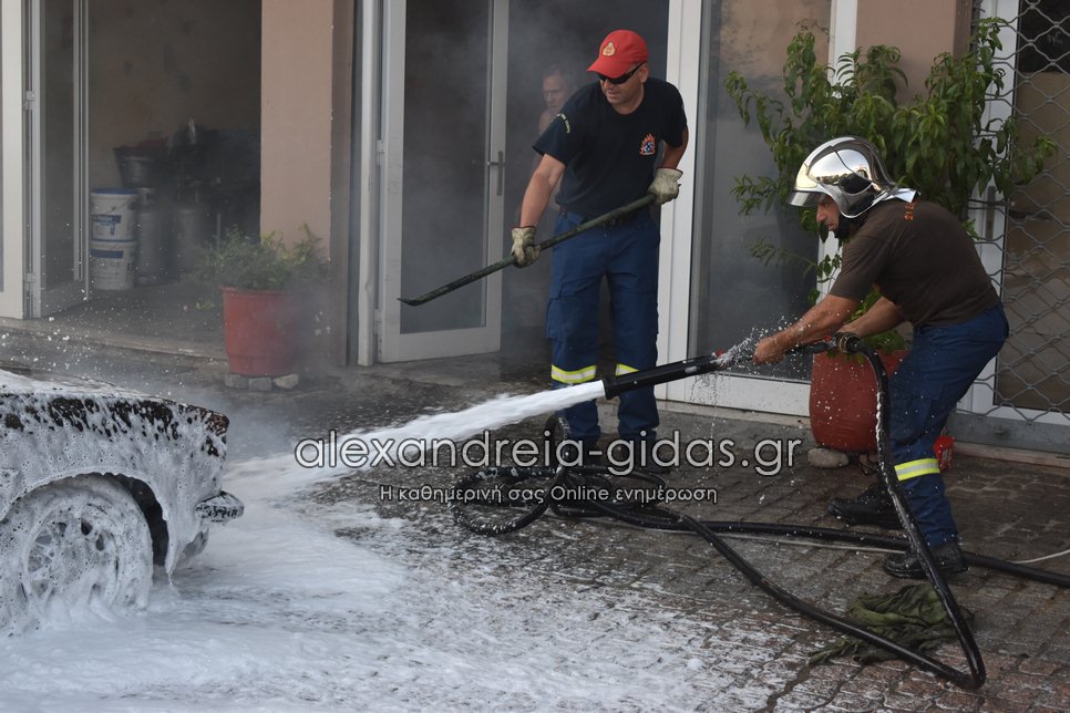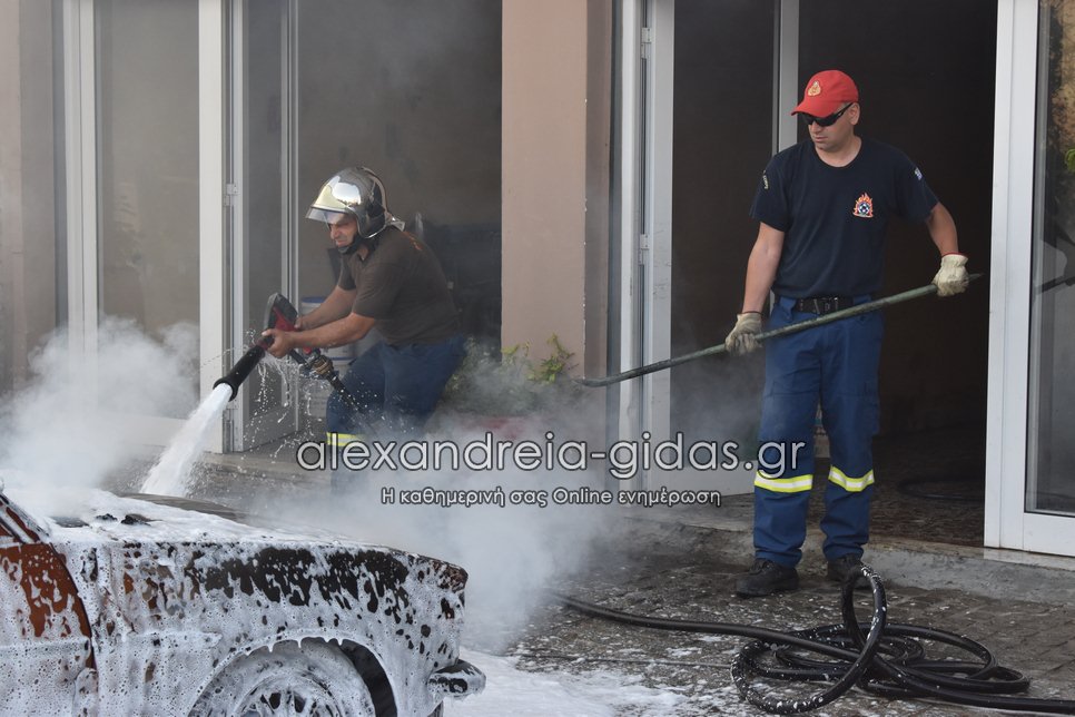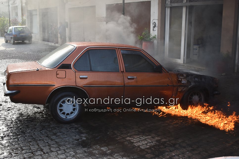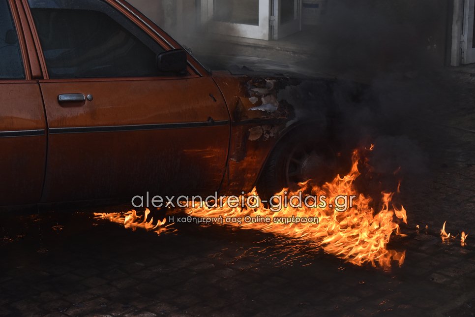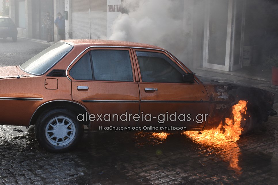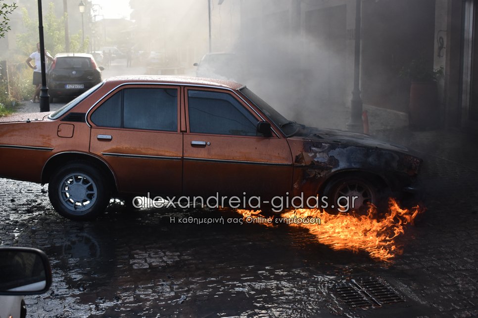 Ι.Χ. αυτοκίνητο τυλίχθηκε στις φλόγες το απόγευμα της Τετάρτης 28 Ιουλίου 2021 στην πόλη της Αλεξάνδρειας.