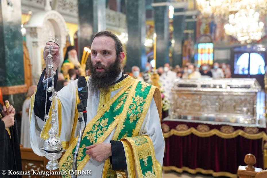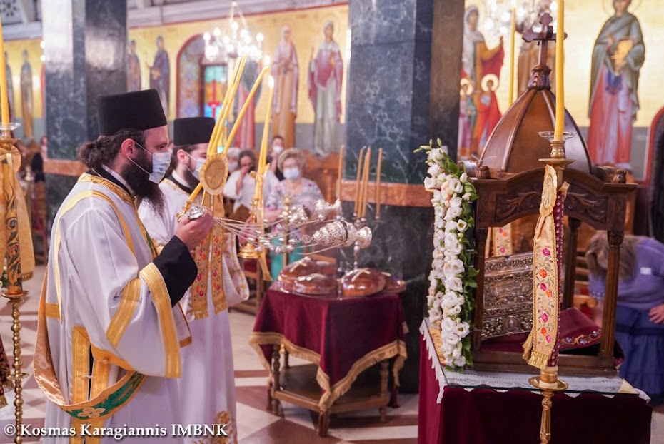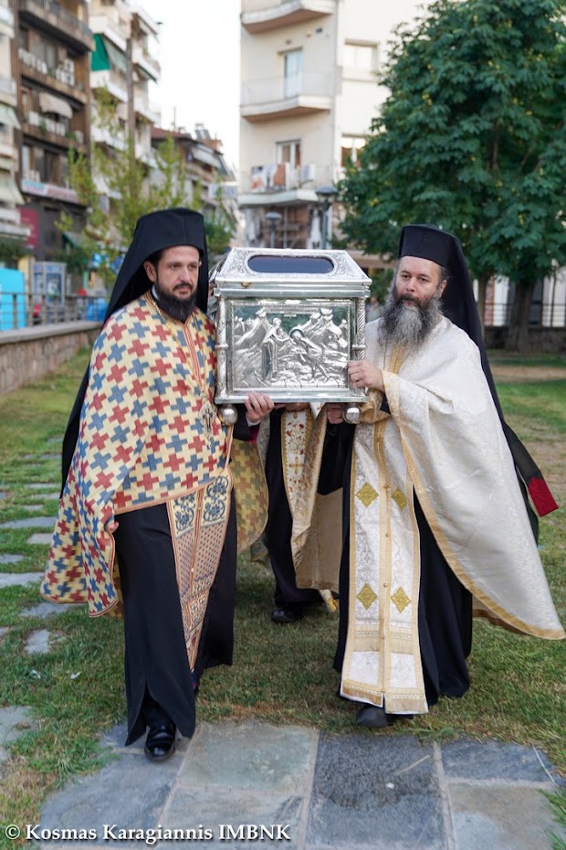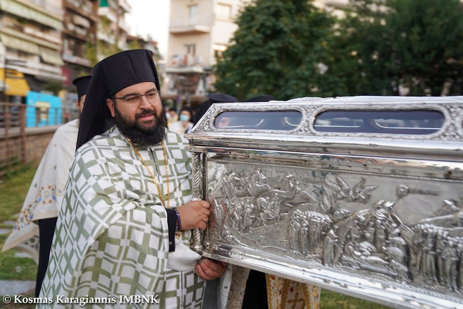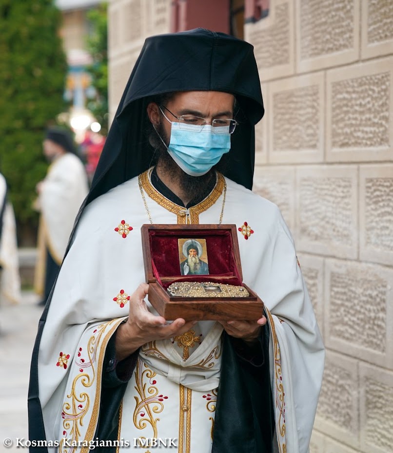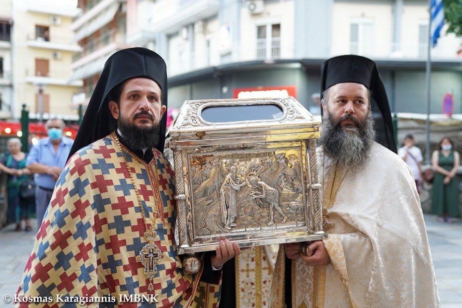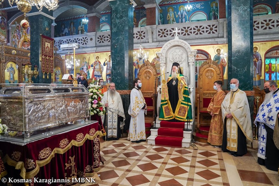 Ἄς τόν προσκυνήσουμε καί ἄς τόν ἀσπασθοῦμε καί ἐμεῖς μέ πίστη καί ἄς τόν παρακαλέσουμε νά γίνει καί γιά μᾶς «φυλακτήριο καί πηγή ἁγιάσματος» καί νά προστατεύει πάντοτε ἀπό κάθε κίνδυνο καί κάθε κακό καί τήν πατρίδα μας καί τόν καθένα μας ξεχωριστά καί νά μᾶς ἀπαλλάξει τό συντομότερο ἀπό αὐτή τή φοβερή πανδημία, διά πρεσβειῶν καί τῶν ἑορταζομένων ἁγίων, τοῦ ὁσίου καί θεοφόρου πατρός ἡμῶν Ἀντωνίου τοῦ νέου, τοῦ Βεροιέως, τῶν ἁγίων ἑπτά Μακκαβαίων, τῆς μητέρας τους ἁγίας Σολομονῆς καί τοῦ διδασκάλου τους ἁγίου Ἐλεαζάρου.