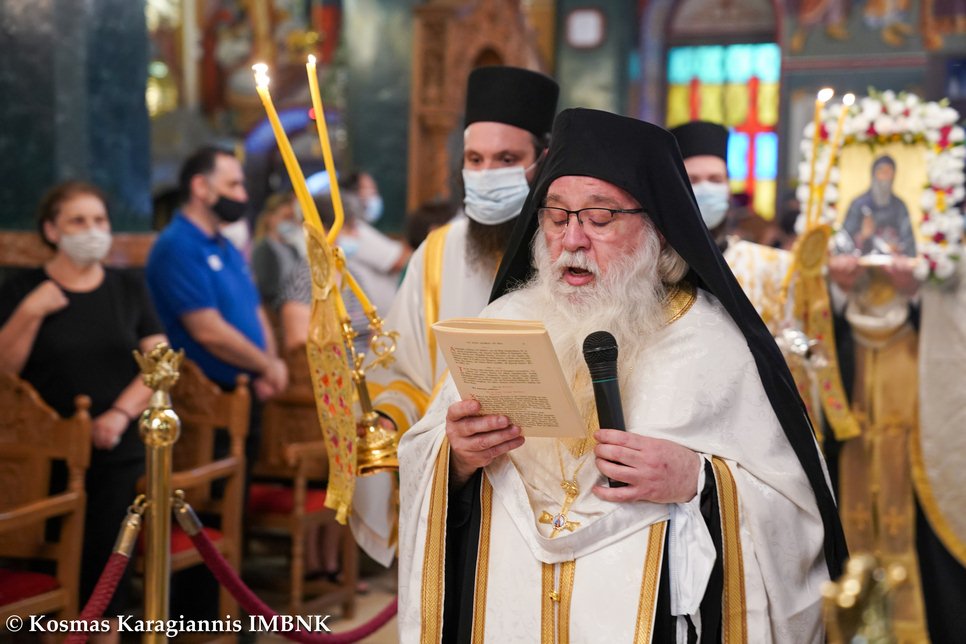 Εν συνεχεία τελέστηκε Μέγας Πανηγυρικός Αρχιερατικός Εσπερινός χοροστατούντος του Σεβασμιωτάτου Μητροπολίτου Βεροίας, Ναούσης και Καμπανίας κ. Παντελεήμονος, ο οποίος κήρυξε και τον θείο λόγο.