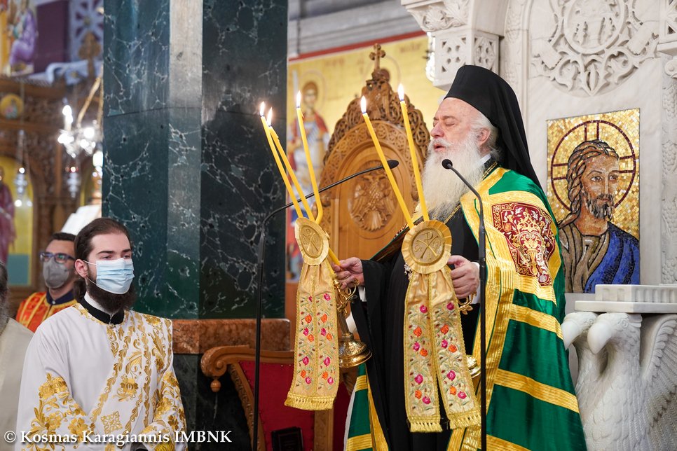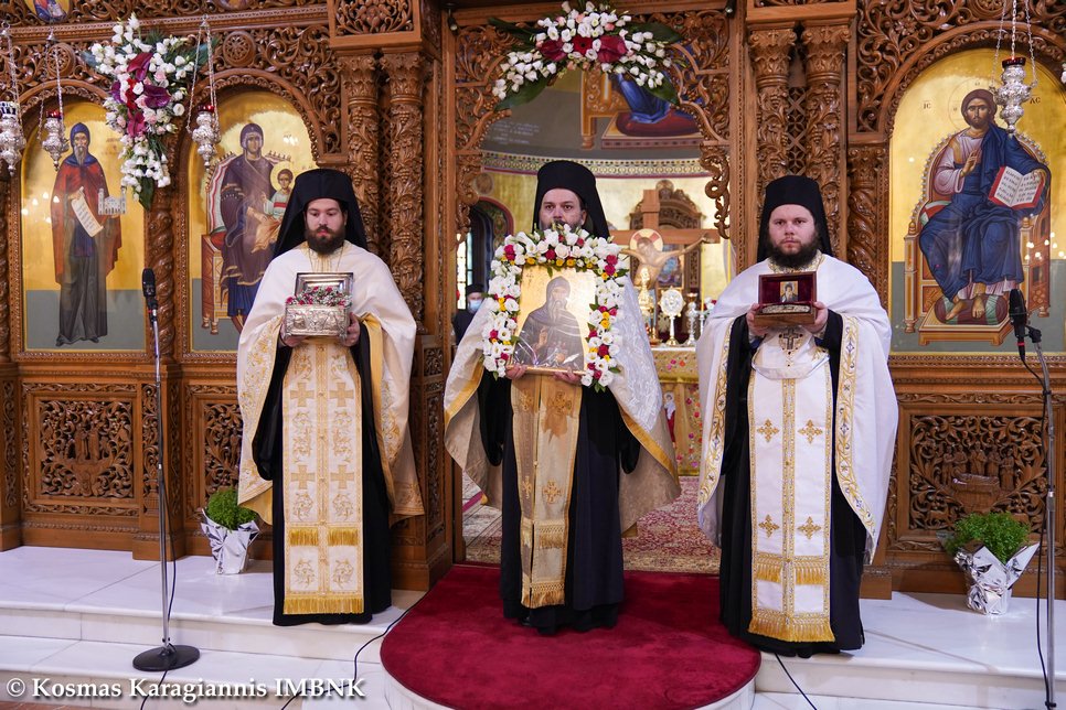 Ἄς τόν προσκυνήσουμε καί ἄς τόν ἀσπασθοῦμε καί ἐμεῖς μέ πίστη καί ἄς τόν παρακαλέσουμε νά γίνει καί γιά μᾶς «φυλακτήριο καί πηγή ἁγιά­σμα­τος» καί νά προστατεύει πά­ντο­τε ἀπό κάθε κίνδυνο καί κάθε κακό καί τήν πατρίδα μας καί τόν καθένα μας ξεχωριστά καί νά μᾶς ἀπαλλάξει τό συντομότερο ἀπό αὐτή τή φοβερή πανδημία, διά πρεσβειῶν καί τῶν ἑορταζομένων ἁγίων, τοῦ ὁσίου καί θεοφόρου πατρός ἡμῶν Ἀντω­νίου τοῦ νέου, τοῦ Βεροιέως, τῶν ἁγίων ἑπτά Μακ­καβαίων, τῆς μητέρας τους ἁγίας Σολομονῆς καί τοῦ διδα­σκάλου τους ἁγίου Ἐλεαζάρου.
