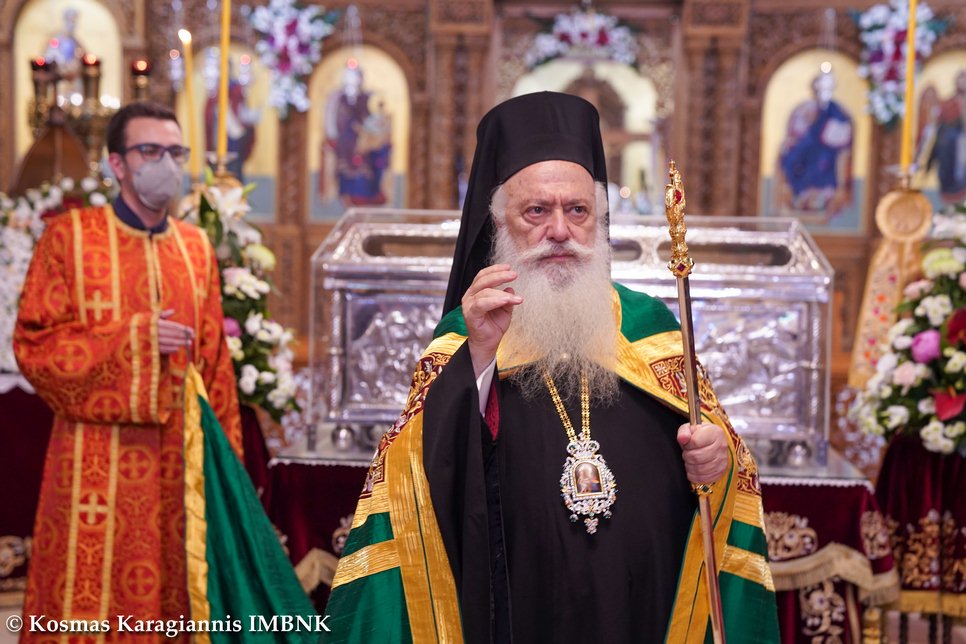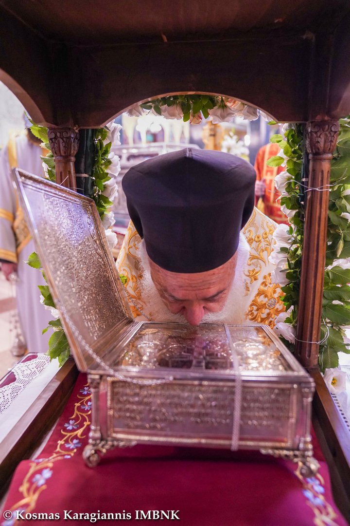 Ἄς τόν προσκυνήσουμε καί ἄς τόν ἀσπασθοῦμε καί ἐμεῖς μέ πίστη καί ἄς τόν παρακαλέσουμε νά γίνει καί γιά μᾶς «φυλακτήριο καί πηγή ἁγιάσματος» καί νά προστατεύει πάντοτε ἀπό κάθε κίνδυνο καί κάθε κακό καί τήν πατρίδα μας καί τόν καθένα μας ξεχωριστά καί νά μᾶς ἀπαλλάξει τό συντομότερο ἀπό αὐτή τή φοβερή πανδημία, διά πρεσβειῶν καί τῶν ἑορταζομένων ἁγίων, τοῦ ὁσίου καί θεοφόρου πατρός ἡμῶν Ἀντωνίου τοῦ νέου, τοῦ Βεροιέως, τῶν ἁγίων ἑπτά Μακκαβαίων, τῆς μητέρας τους ἁγίας Σολομονῆς καί τοῦ διδασκάλου τους ἁγίου Ἐλεαζάρου.