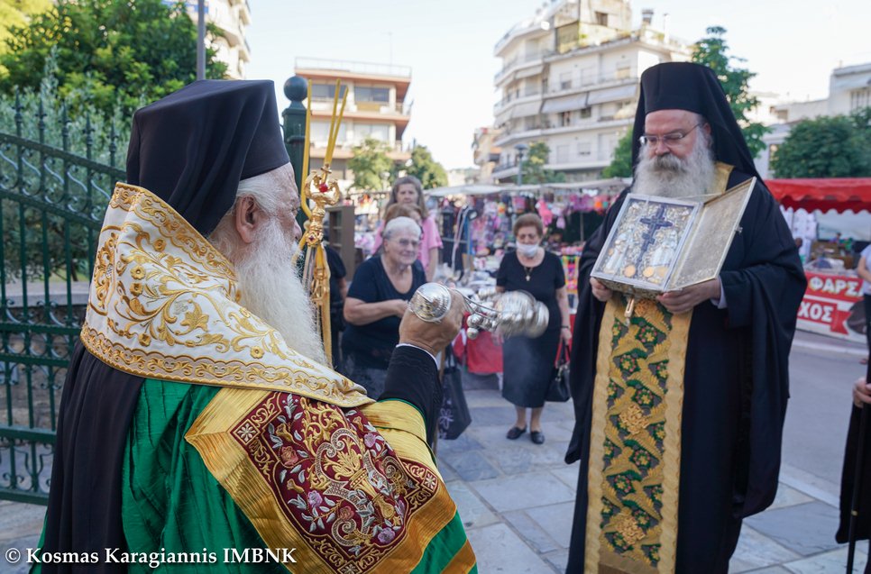 Εξαιτίας των ειδικών υγειονομικών μέτρων προστασίας δεν πραγματοποιήθηκε η καθιερωμένη ιερά λιτανεία των Ιερών Λειψάνων του Αγίου Αντωνίου του Βεροιέως και του Τιμίου Σταυρού στους δρόμους της πόλεως, αλλά κατόπιν σχετικής άδειας πραγματοποιήθηκε μόνον στον αύλειο χώρου του Ιερού Ναού και με την συμμετοχή μόνο του Ιερού Κλήρου και των Αρχών.