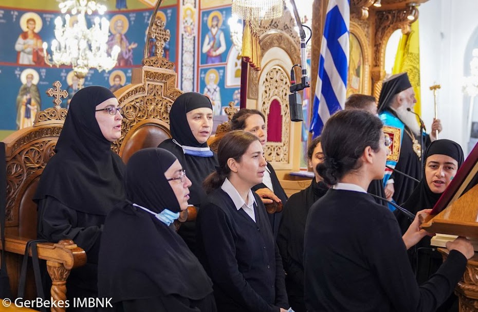 Στην Ιερά Ακολουθία έψαλλαν οι αδελφές από την Ιερά Μονή Ευαγγελισμού της Θεοτόκου Χαλεπίου, οι οποίες εγκαταβιούν στην Ιερά Μονή της Αγίας Κυριακής Λουτρού.