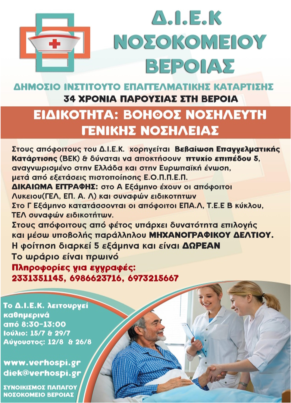 Από το ΔΙΕΚ του Νοσοκομείου Βέροιας έγιναν γνωστά τα εξής:
