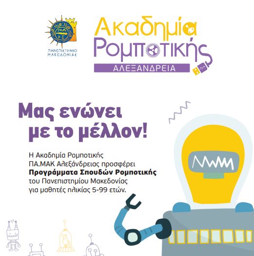 Η Ακαδημία Ρομποτικής Αλεξάνδρειας θα απευθύνεται σε όλες τις ηλικίες από τα παιδιά του Νηπιαγωγείου μέχρι και ενήλικες!