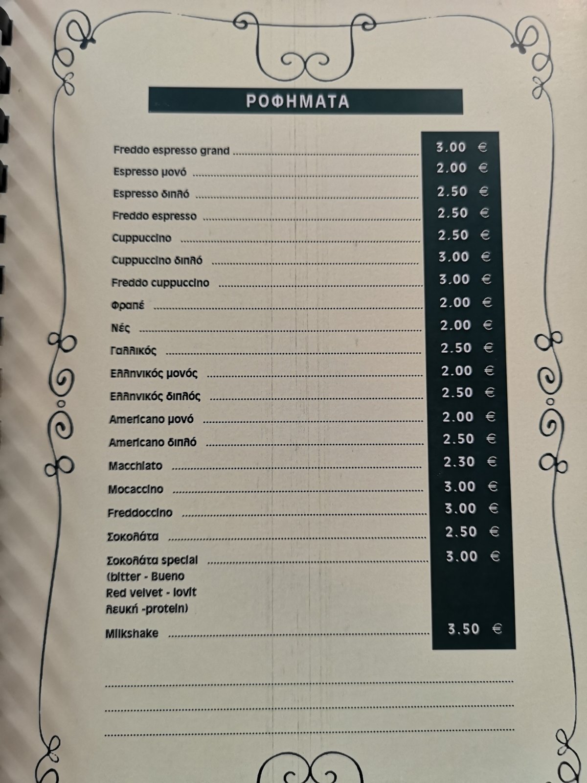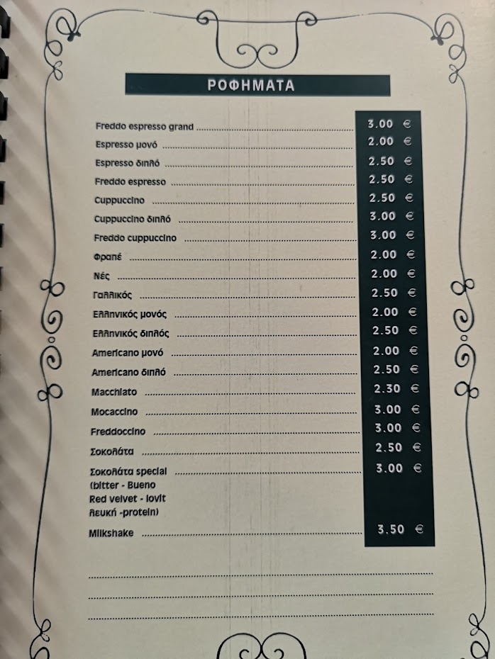 Θα μας σερβίρουν τον καφέ μας, τα αγαπημένα ροφήματά μας τα οποία να συνοδεύουμε με απολαυστικές γλυκές και αλμυρές γεύσεις.