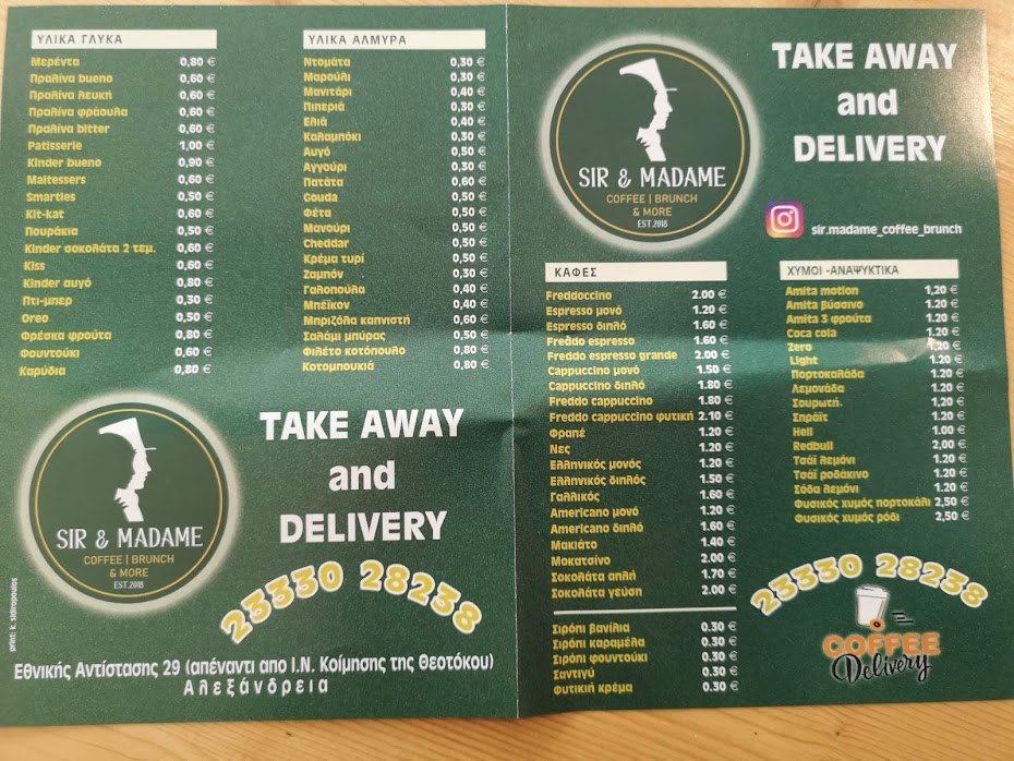 Πλέον όλες οι επιλογές του SIR & MADAME και με ένα τηλεφώνημα στο 2333028238 στην πόρτα μας!