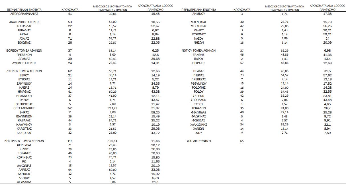 Με βάση τα επιβεβαιωμένα κρούσματα των τελευταίων 7 ημερών, 137 θεωρούνται σχετιζόμενα με ταξίδι από το εξωτερικό και 3.502 είναι σχετιζόμενα με ήδη γνωστό κρούσμα.