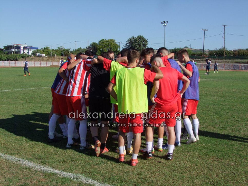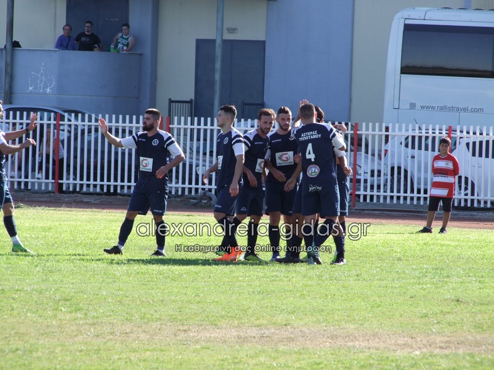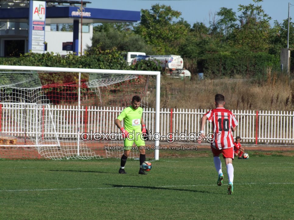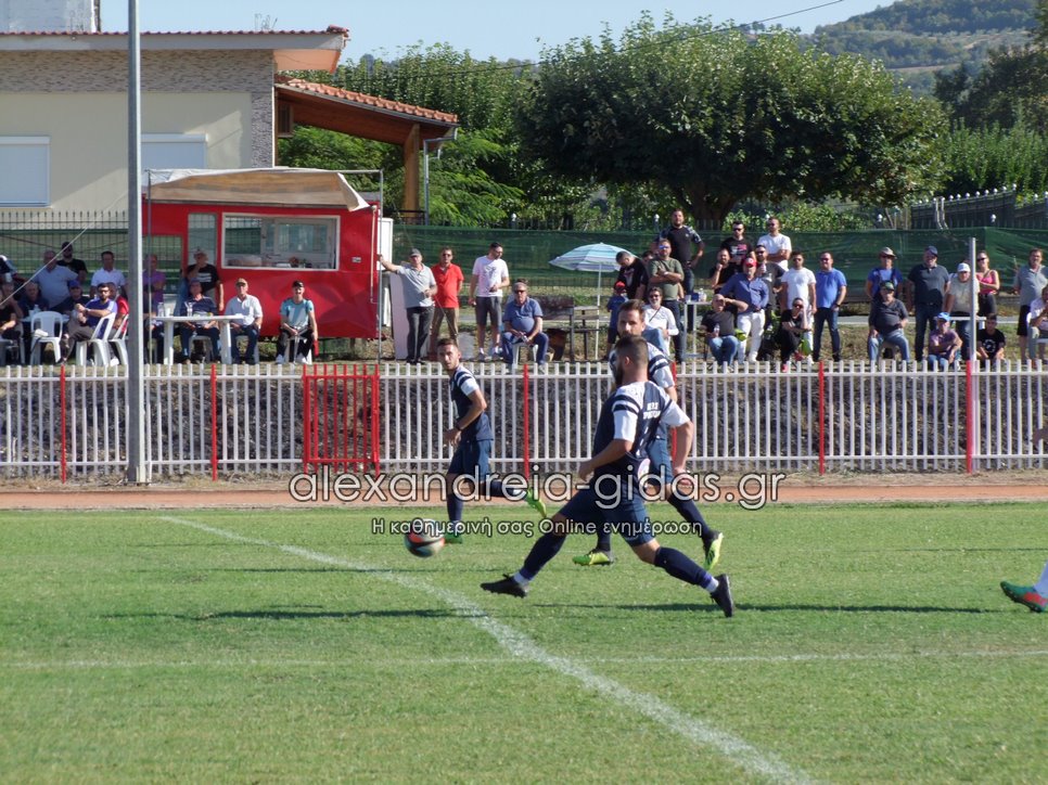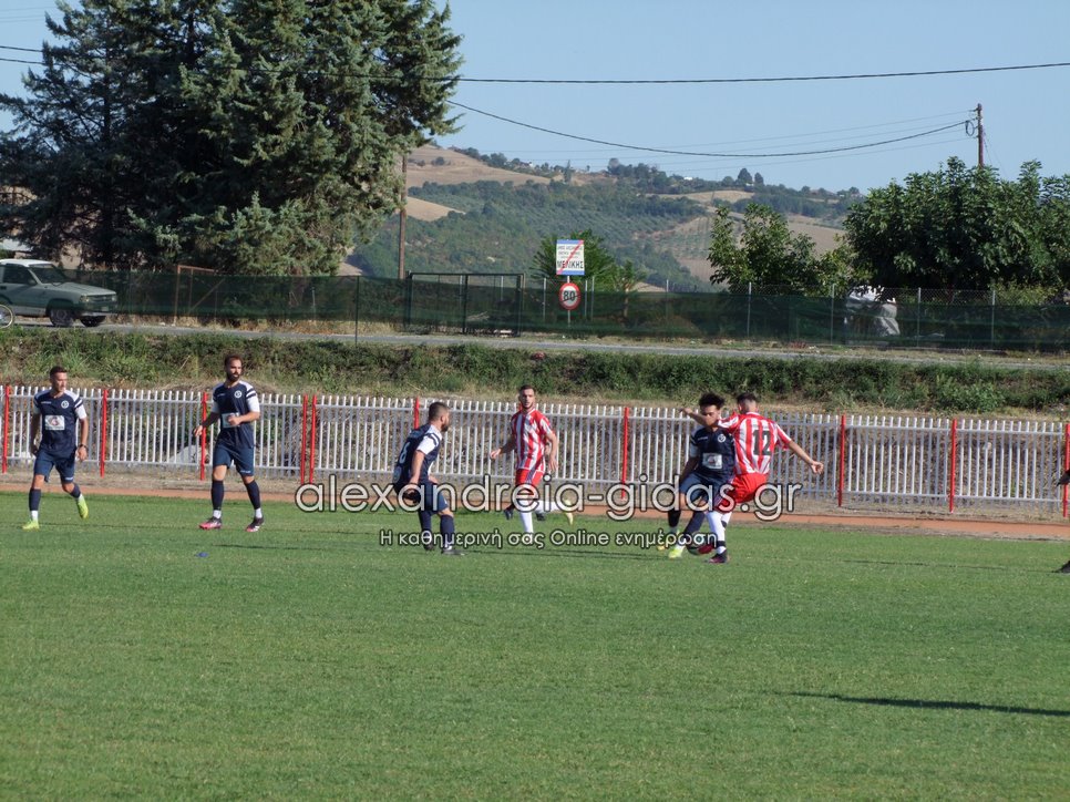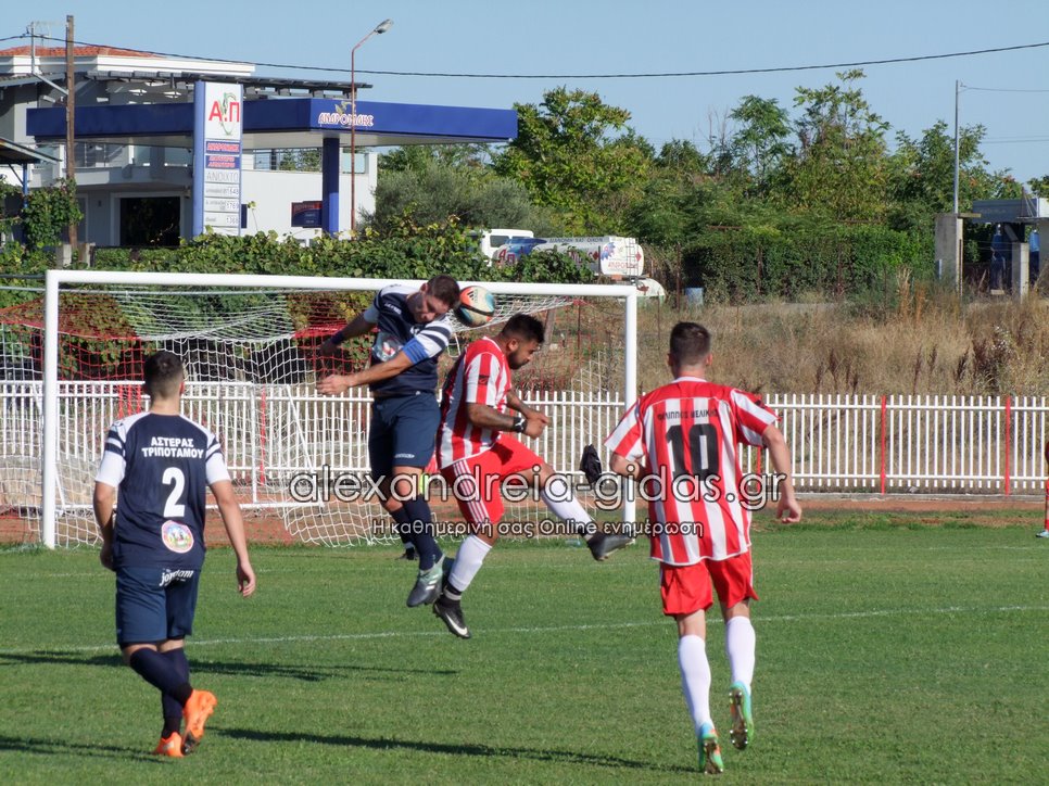 Έγινε ένα δυνατό παιχνίδι με τους φιλοξενούμενους να είναι καλύτεροι στο πρώτο ημίχρονο και να παίρνουν το προβάδισμα με 2-0. Στο 25΄ο Μετάι έβγαλε την μπαλιά και ο Σοφιανίδης με σουτ άνοιξε το σκορ (0-1). Στο 37′ ο Σαλπιγκίδης κέρδισε πέναλτι από τον Ηλιάδη και ο Προβατίδης με εύστοχο χτύπημα διπλασίασε τα τέρματα του Τριποτάμου (0-2).