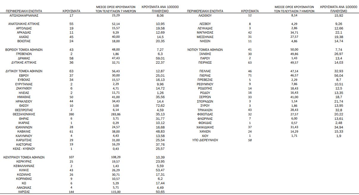 Με βάση τα επιβεβαιωμένα κρούσματα των τελευταίων 7 ημερών, 90 θεωρούνται σχετιζόμενα με ταξίδι από το εξωτερικό και 2.897 είναι σχετιζόμενα με ήδη γνωστό κρούσμα.