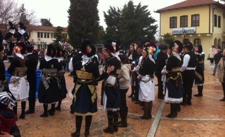 | Οι παραδοσιακοί χοροί πριν την έναρξη της παρέλασης των αρμάτων |