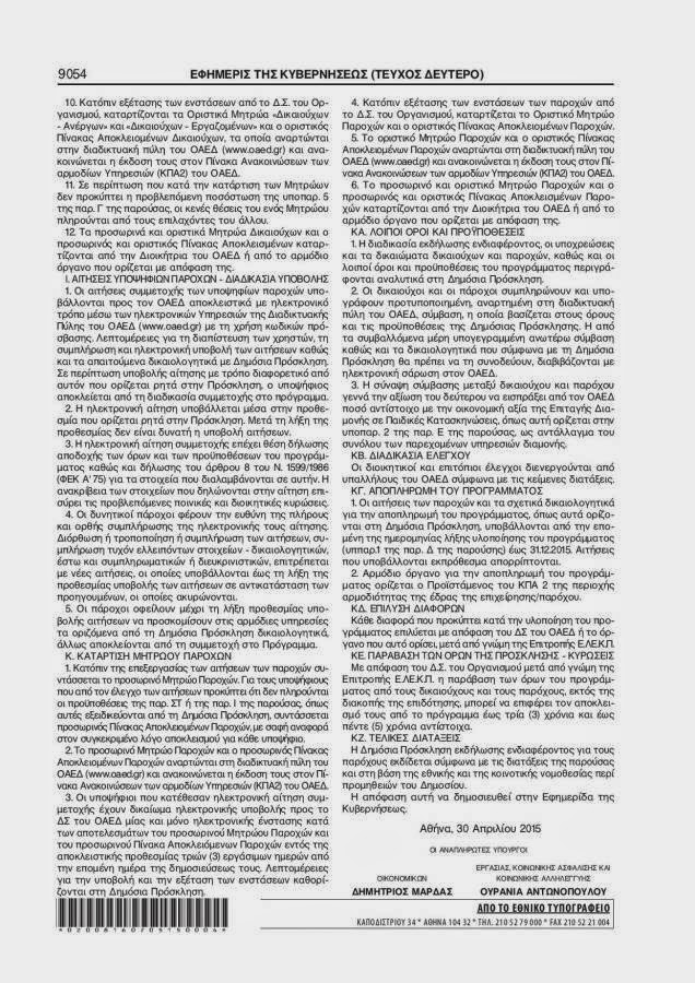 Οι αιτήσεις των ενδιαφερομένων θα υποβάλλονται αποκλειστικά ηλεκτρονικά στον ΟΑΕΔ μετά τη δημόσια πρόσκληση την οποία θα απευθύνει.