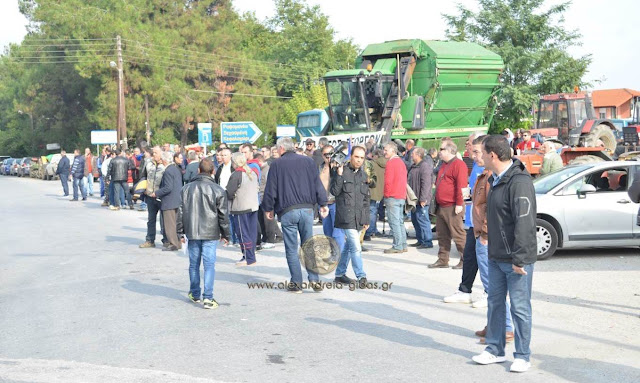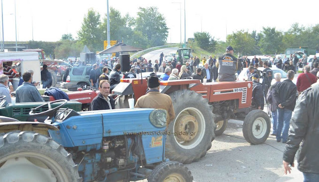 Στον κόμβο της Κουλούρας συγκεντρώθηκαν το πρωί της Πέμπτης οι αγροτικοί σύλλογοι Αλεξάνδρειας, Βέροιας και Νάουσας.