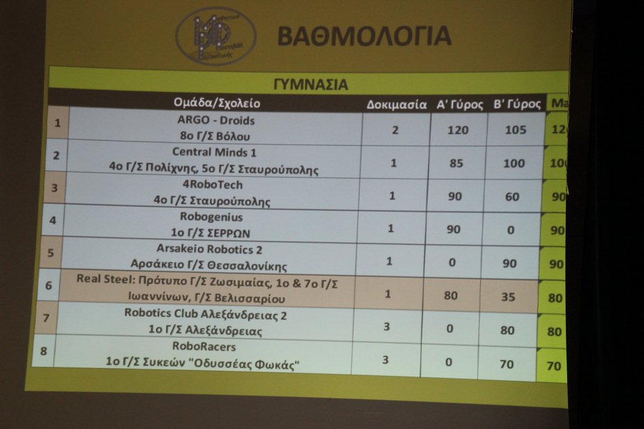 Συμμετείχαν δύο ομάδες με προπονητή τον καθηγητή πληροφορικής Καρκαμάνη Γεώργιο, οι οποίες διαγωνίστηκαν στην αγωνιστική κατηγορία του γυμνασίου με αποτέλεσμα να καταλάβουν την 7η και 16η θέση αντίστοιχα, και αποσπώντας έπαινο καλή παρουσίας.