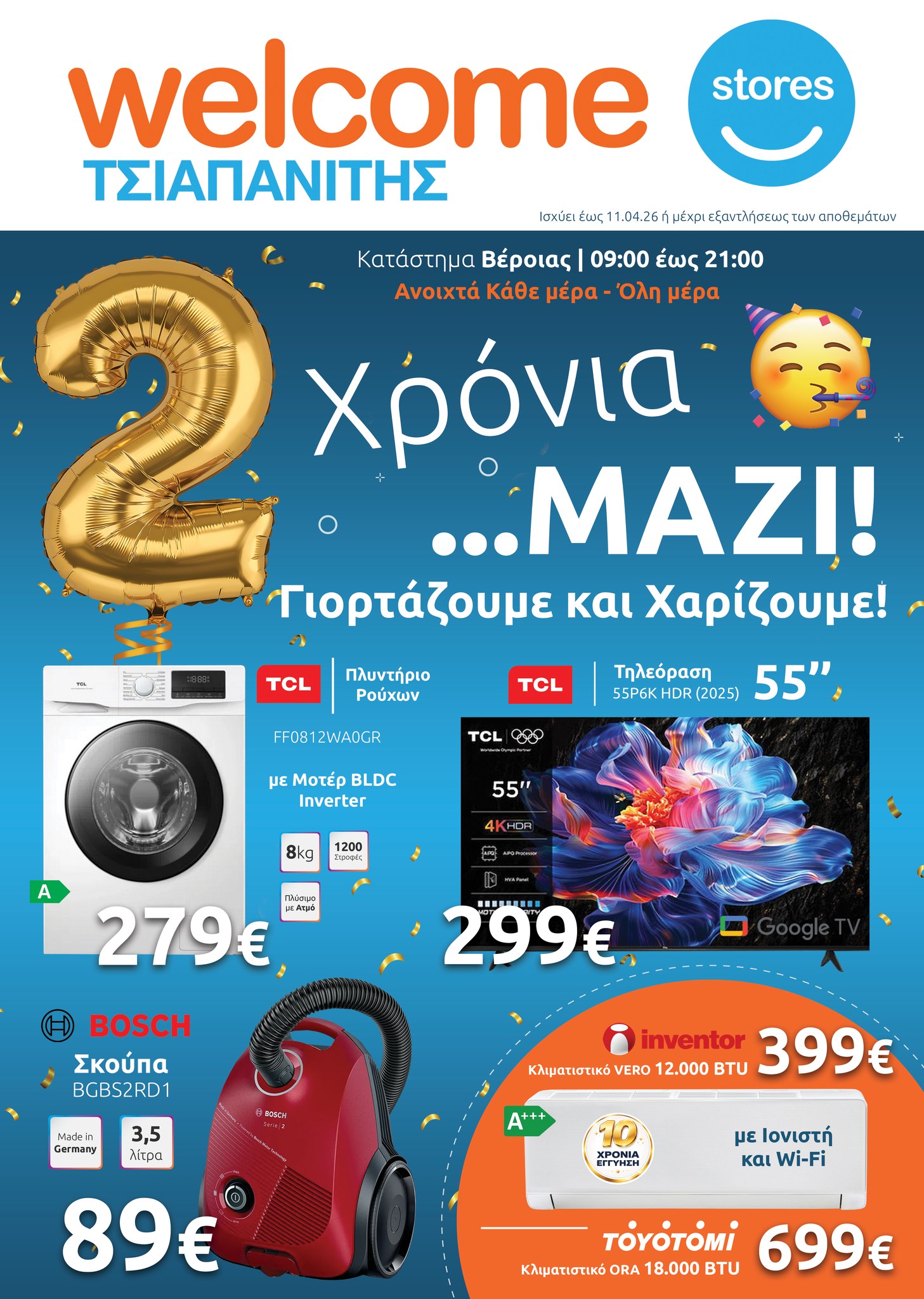 Τα δεύτερα γενέθλιά του γιορτάζει το κατάστημα Welcome Stores Τσιαπανίτης στη Βέροια και χαρίζει μοναδικές τιμές σε κορυφαία προϊόντα!