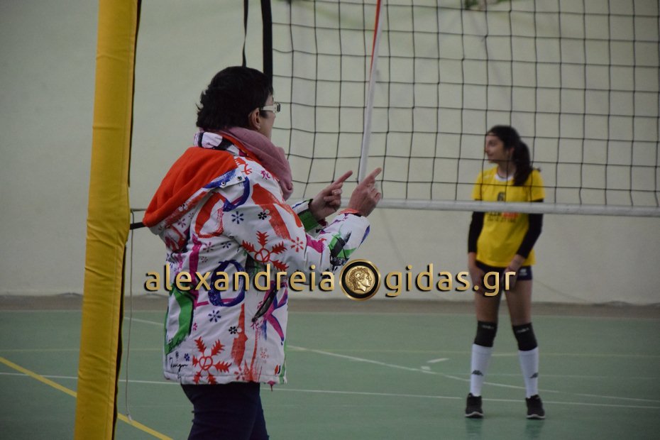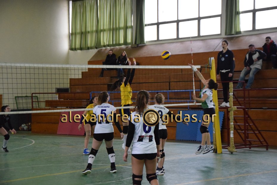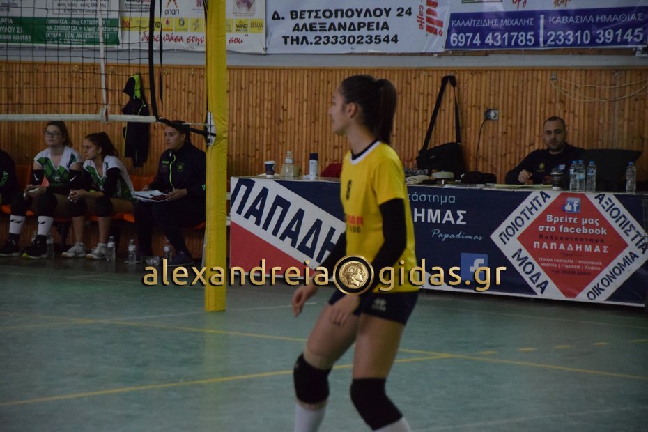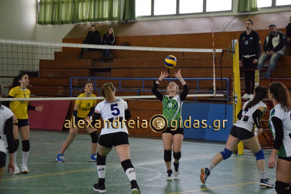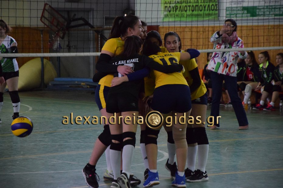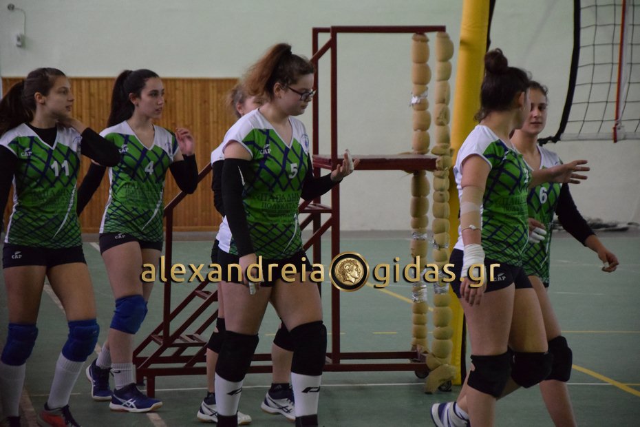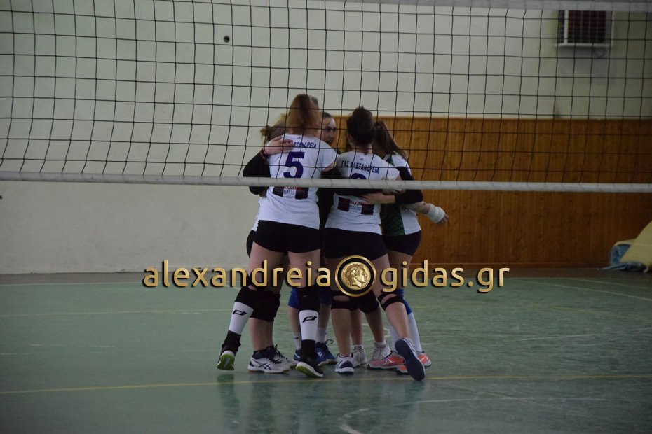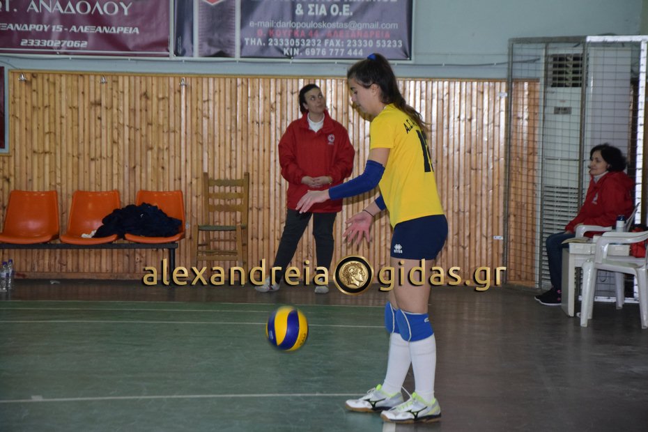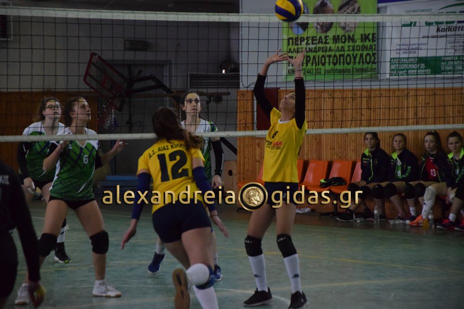 Τα κορίτσια φιλοξένησαν στο κλειστό του δημοτικού σταδίου Αλεξάνδρειας την ομάδα του Αίαντα του Κιλκίς την οποία και κέρδισαν με 3-0 σετ.