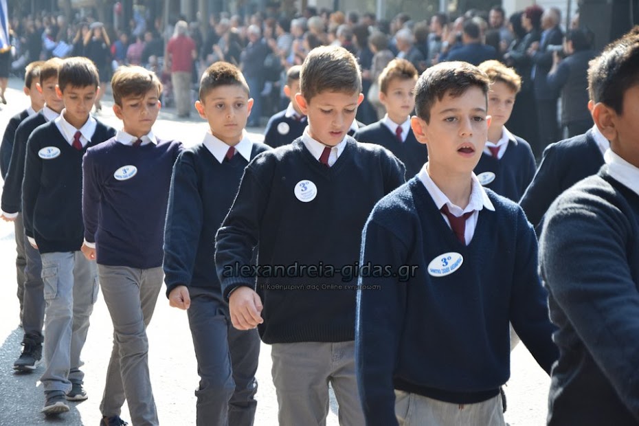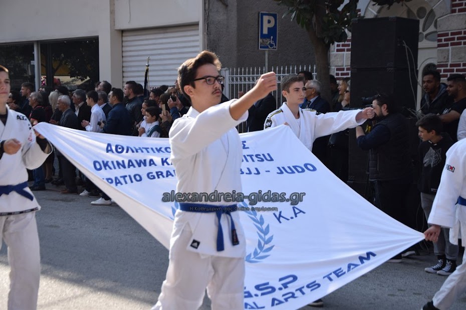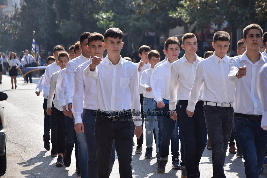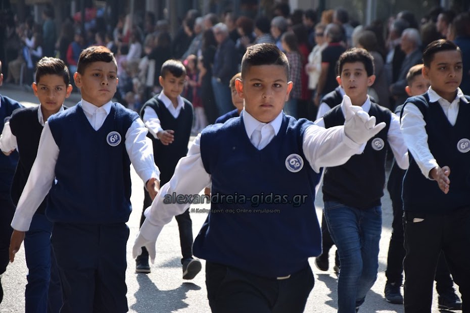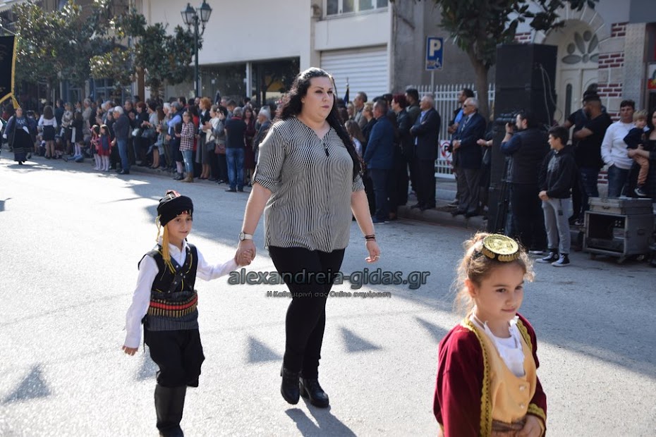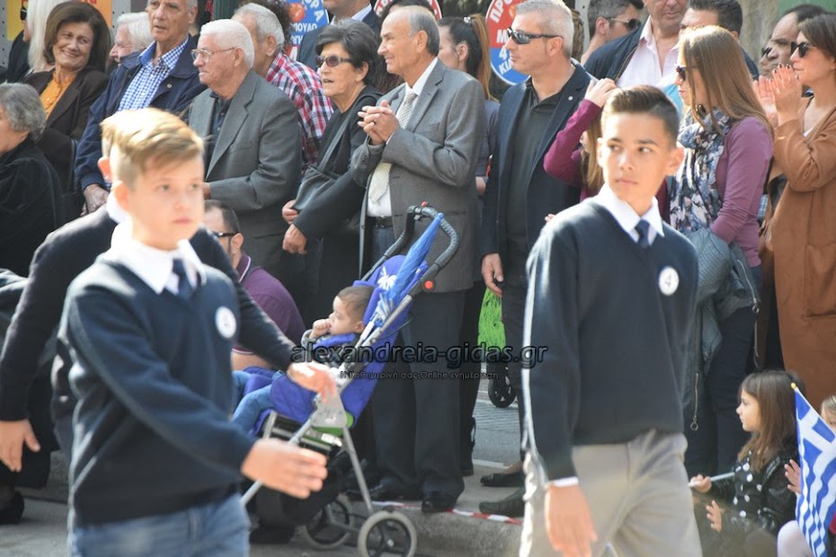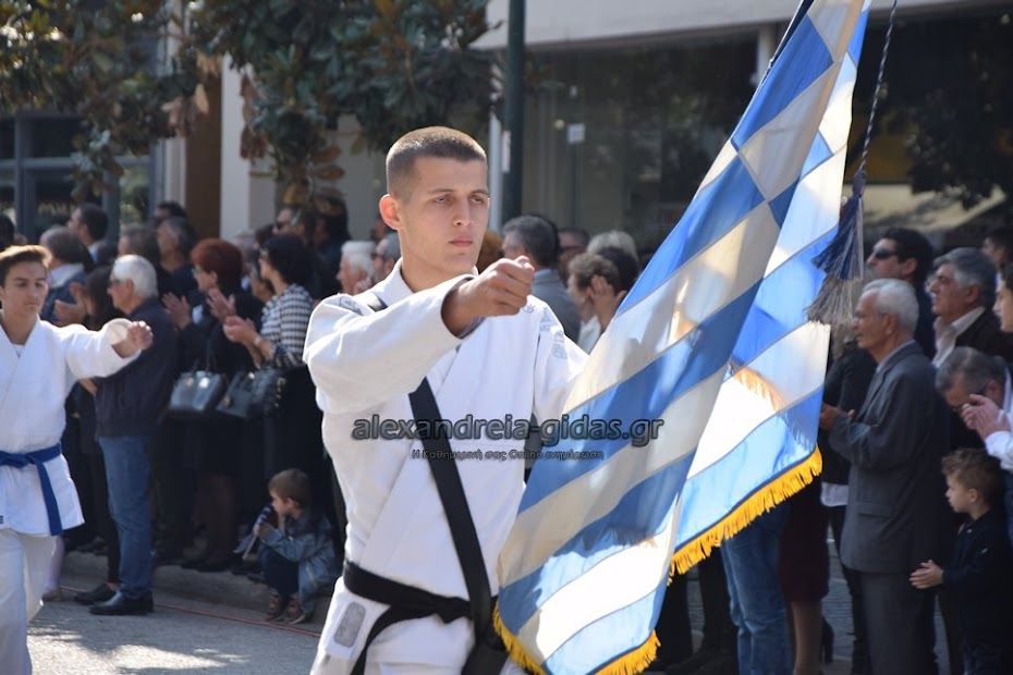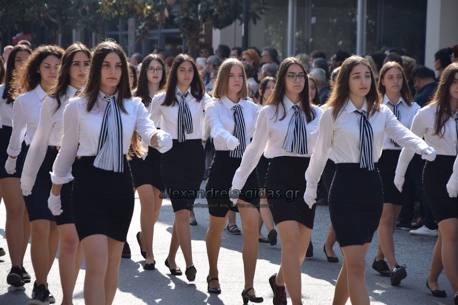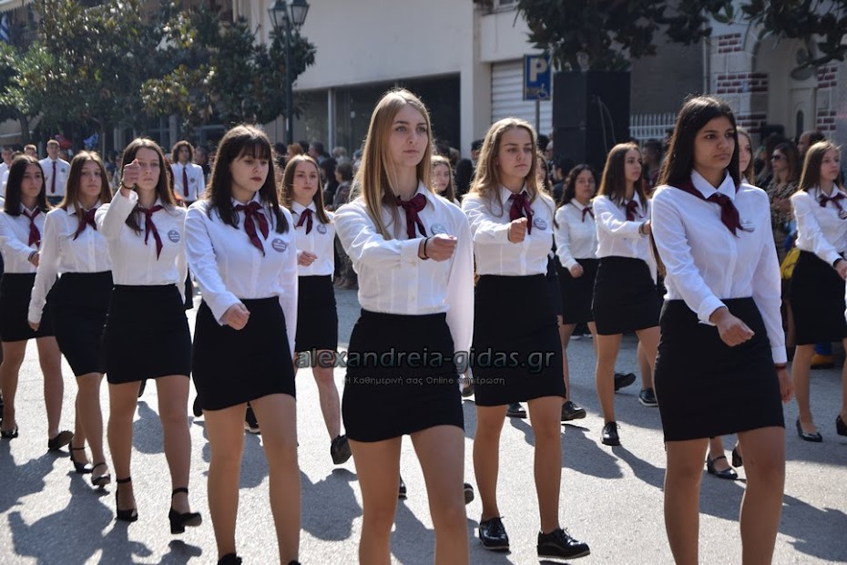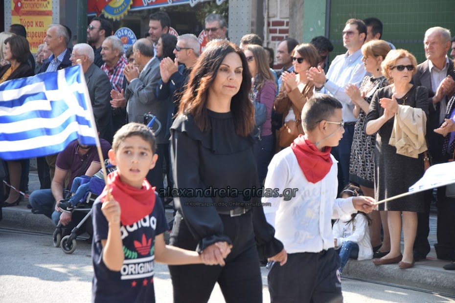 Το θερμό χειροκρότημα του κόσμου που συγκεντρώθηκε στο κέντρο της πόλης απέσπασαν τα σχολεία, οι πολιτιστικοί και αθλητικοί σύλλογοι, οι Πρόσκοποι Αλεξάνδρειας και ο στρατός που παρέλασαν στην Βετσοπούλου.