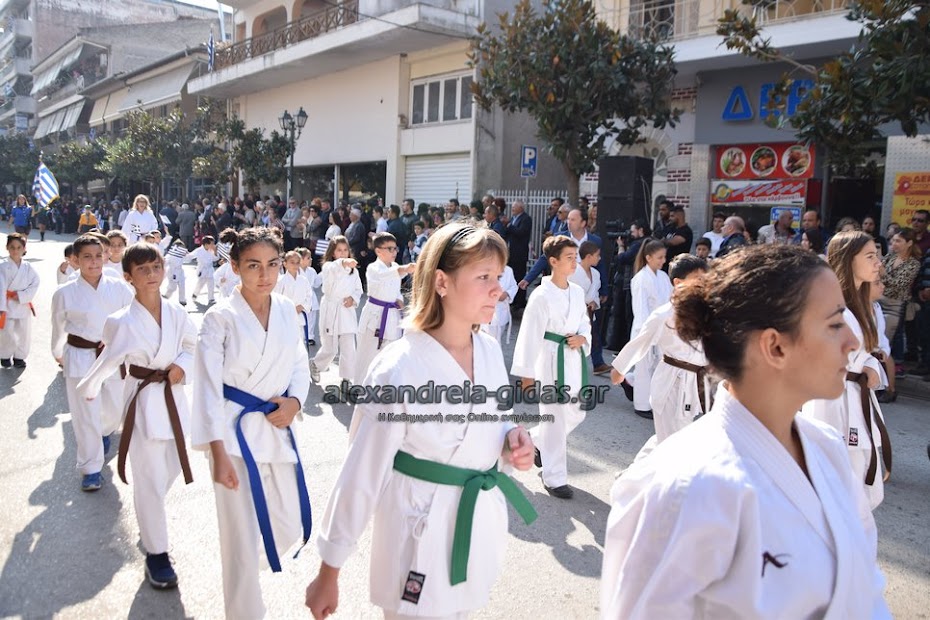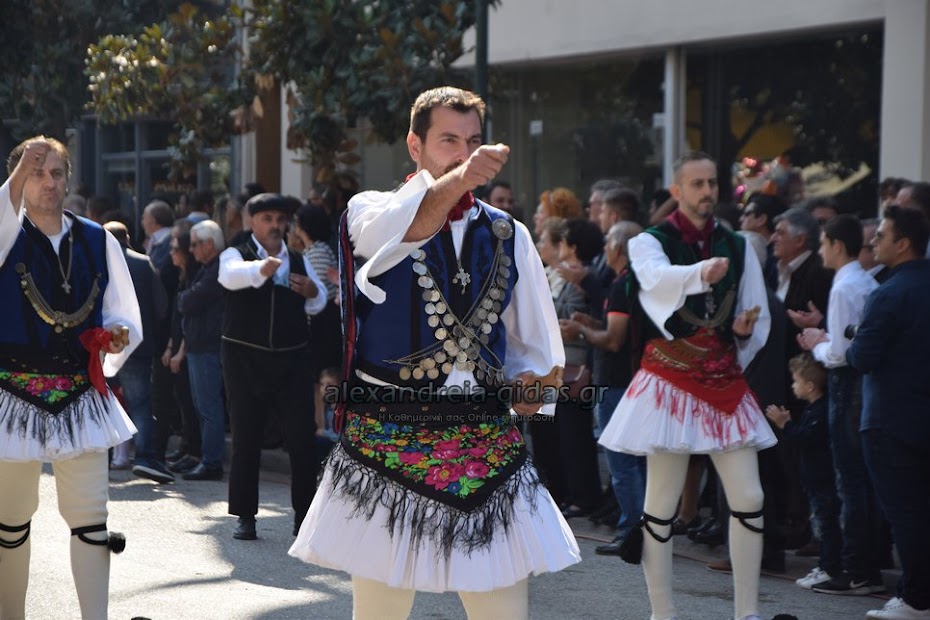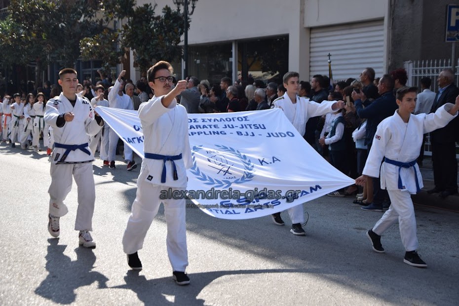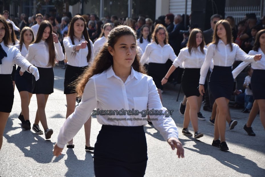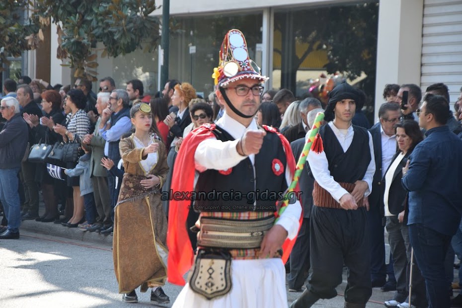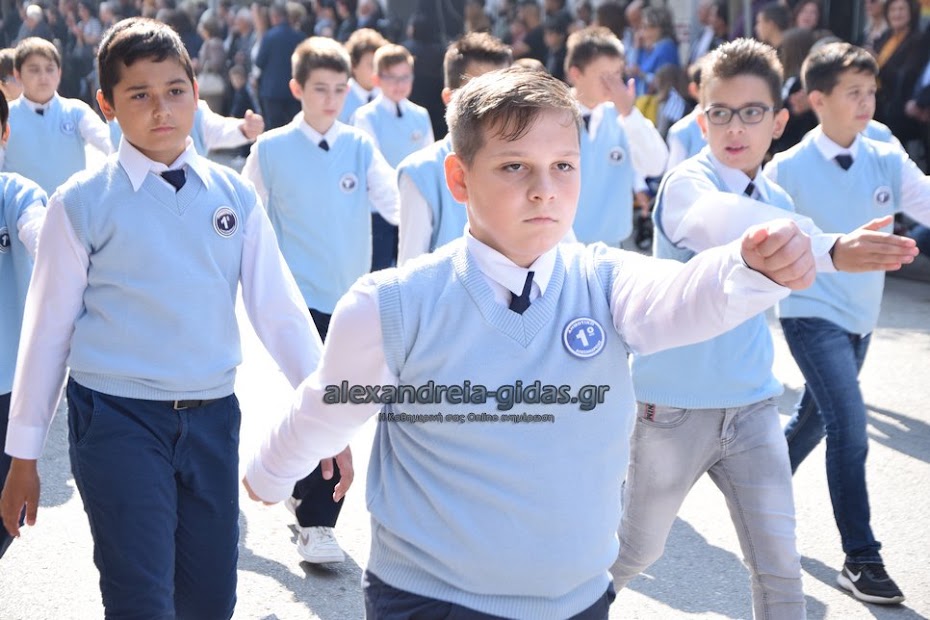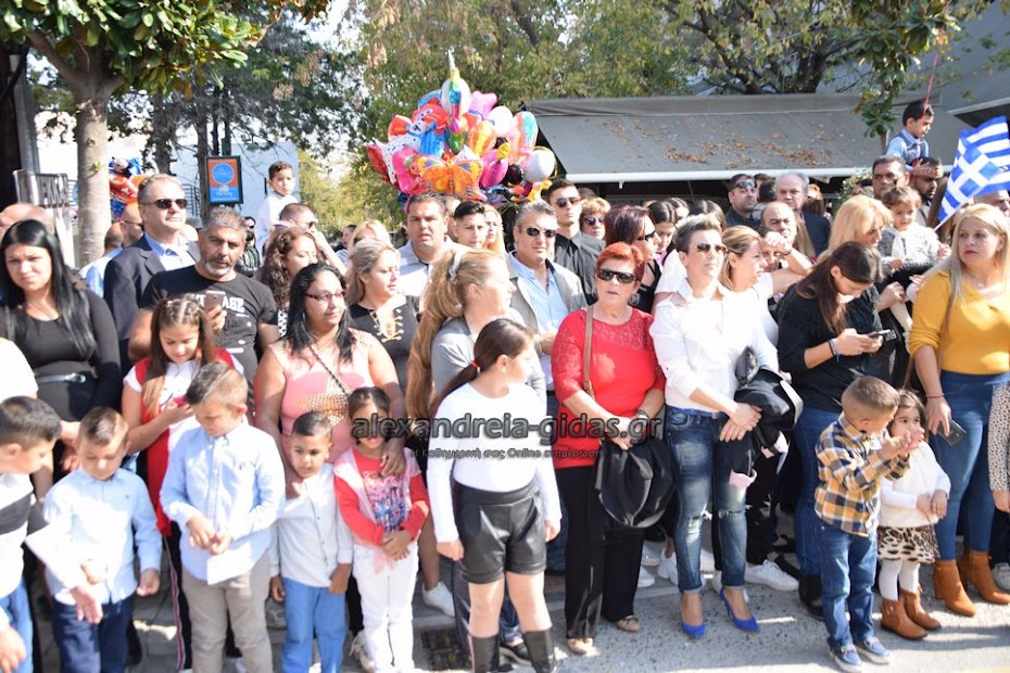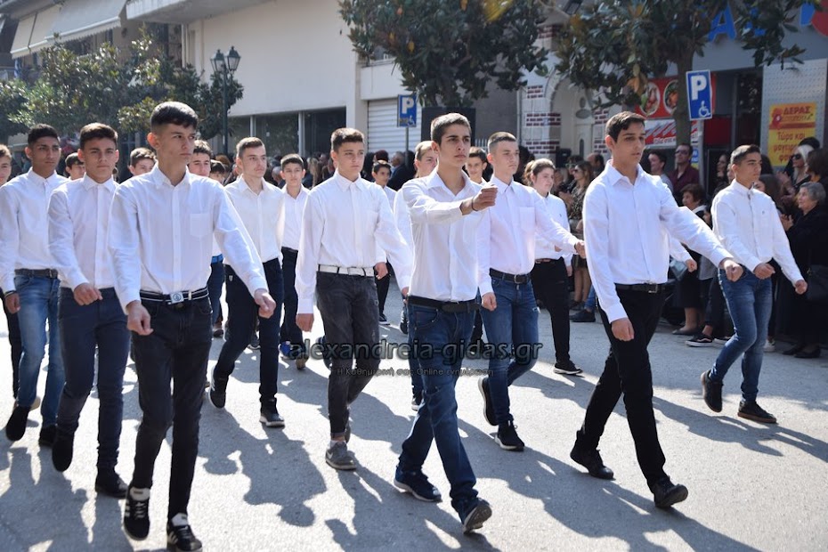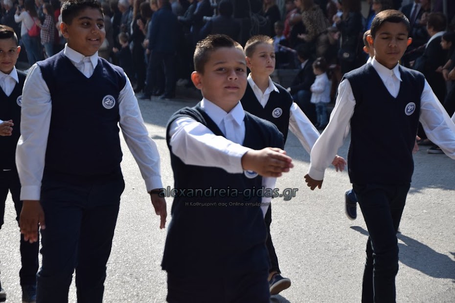 Το θερμό χειροκρότημα του κόσμου που συγκεντρώθηκε στο κέντρο της πόλης απέσπασαν τα σχολεία, οι πολιτιστικοί και αθλητικοί σύλλογοι, οι Πρόσκοποι Αλεξάνδρειας και ο στρατός που παρέλασαν στην Βετσοπούλου.