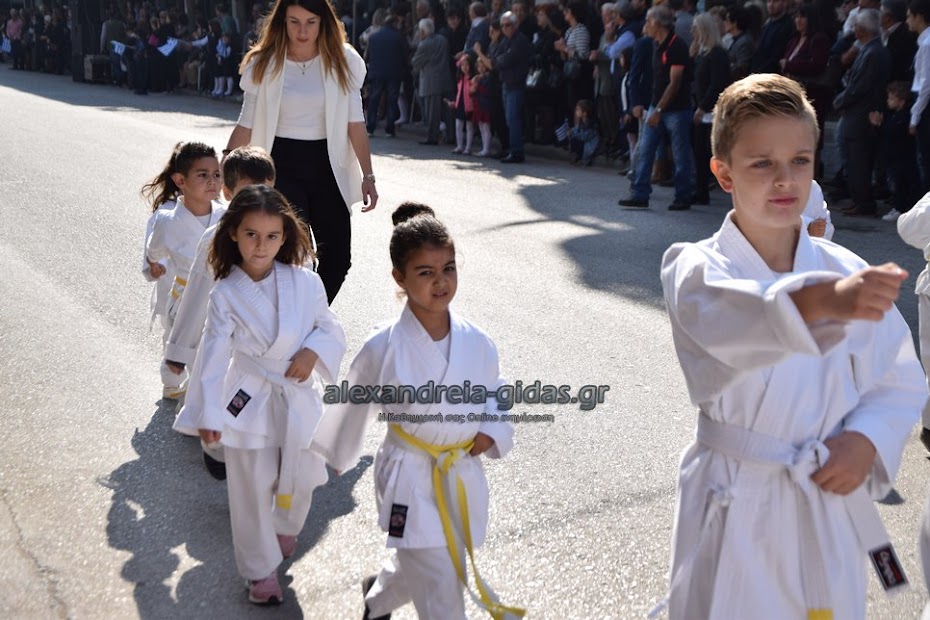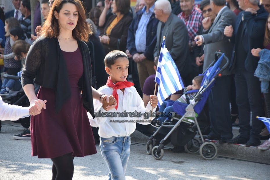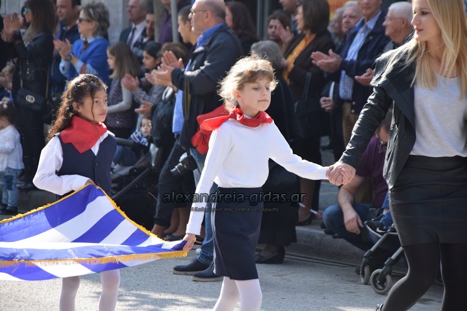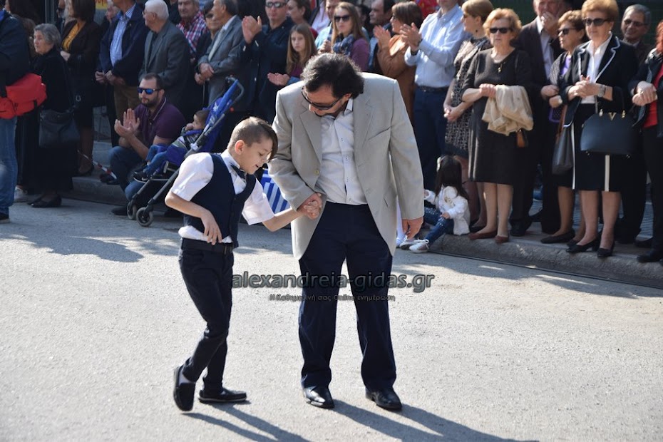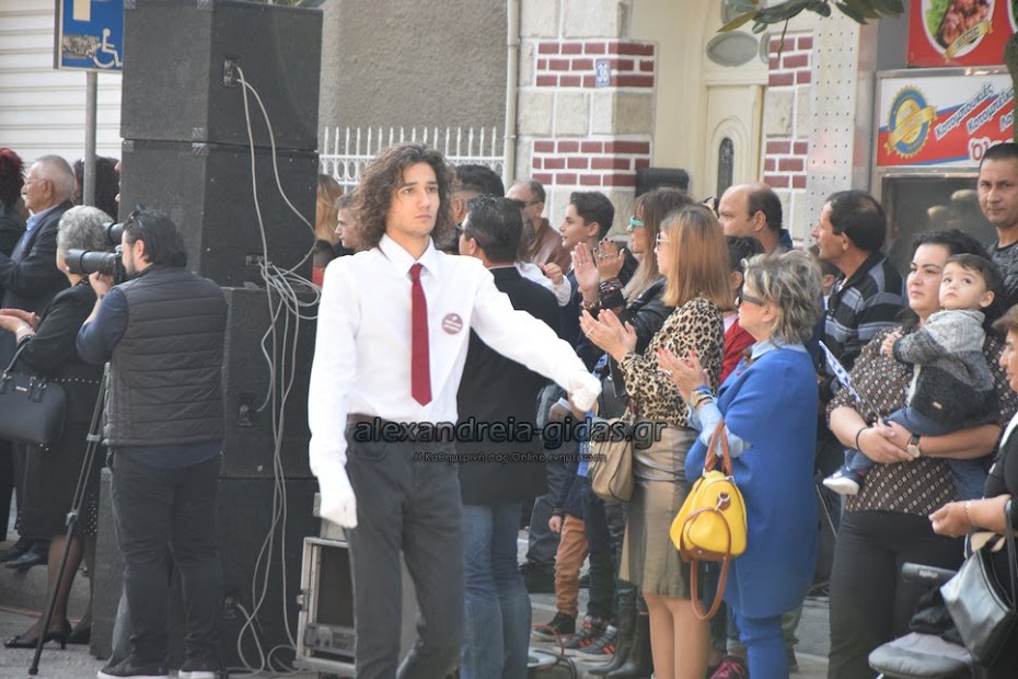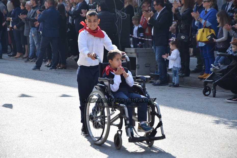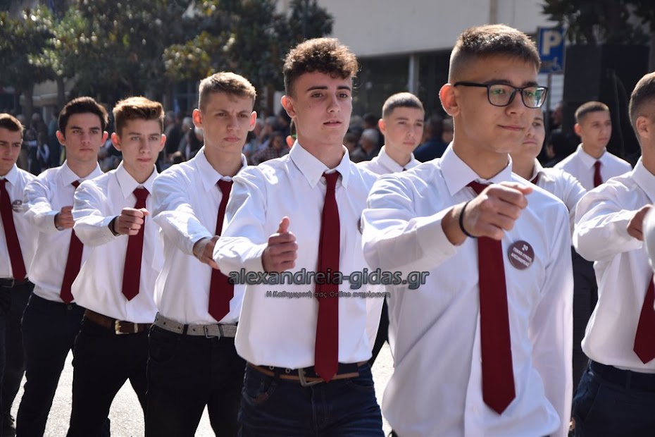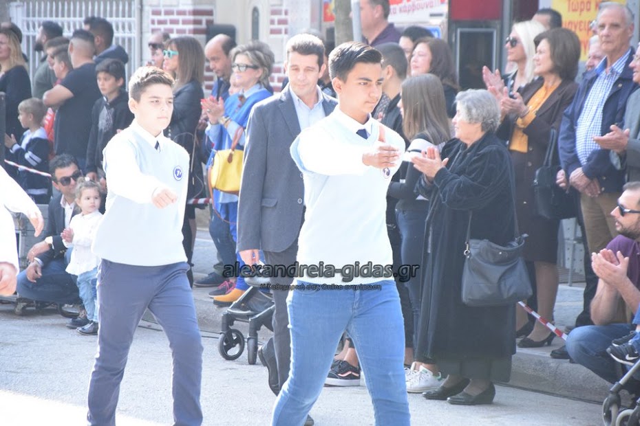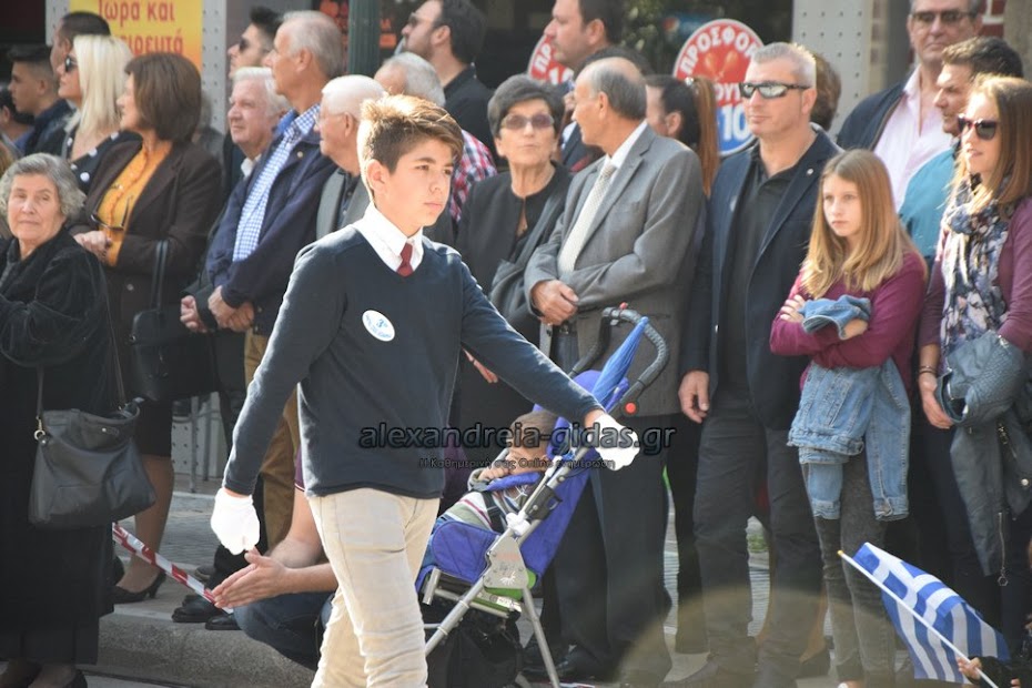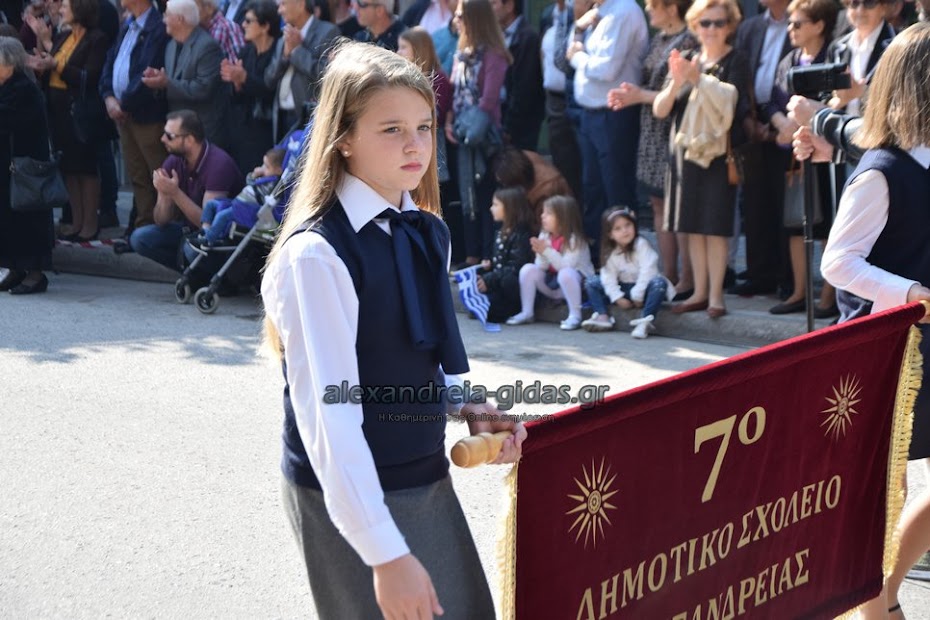 Το θερμό χειροκρότημα του κόσμου που συγκεντρώθηκε στο κέντρο της πόλης απέσπασαν τα σχολεία, οι πολιτιστικοί και αθλητικοί σύλλογοι, οι Πρόσκοποι Αλεξάνδρειας και ο στρατός που παρέλασαν στην Βετσοπούλου.