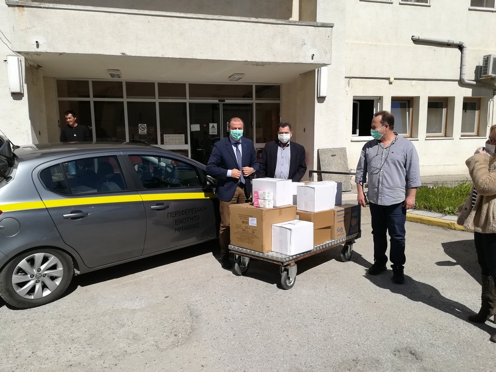 Η διανομή του  υγειονομικού υλικού και των ειδών ατομικής προστασίας γίνεται με τη συνεργασία της 3ης ΥΠΕ Μακεδονίας και παρόμοιες αποστολές φορτίων, θα ακολουθήσουν για την Ημαθία και στο προσεχές διάστημα.