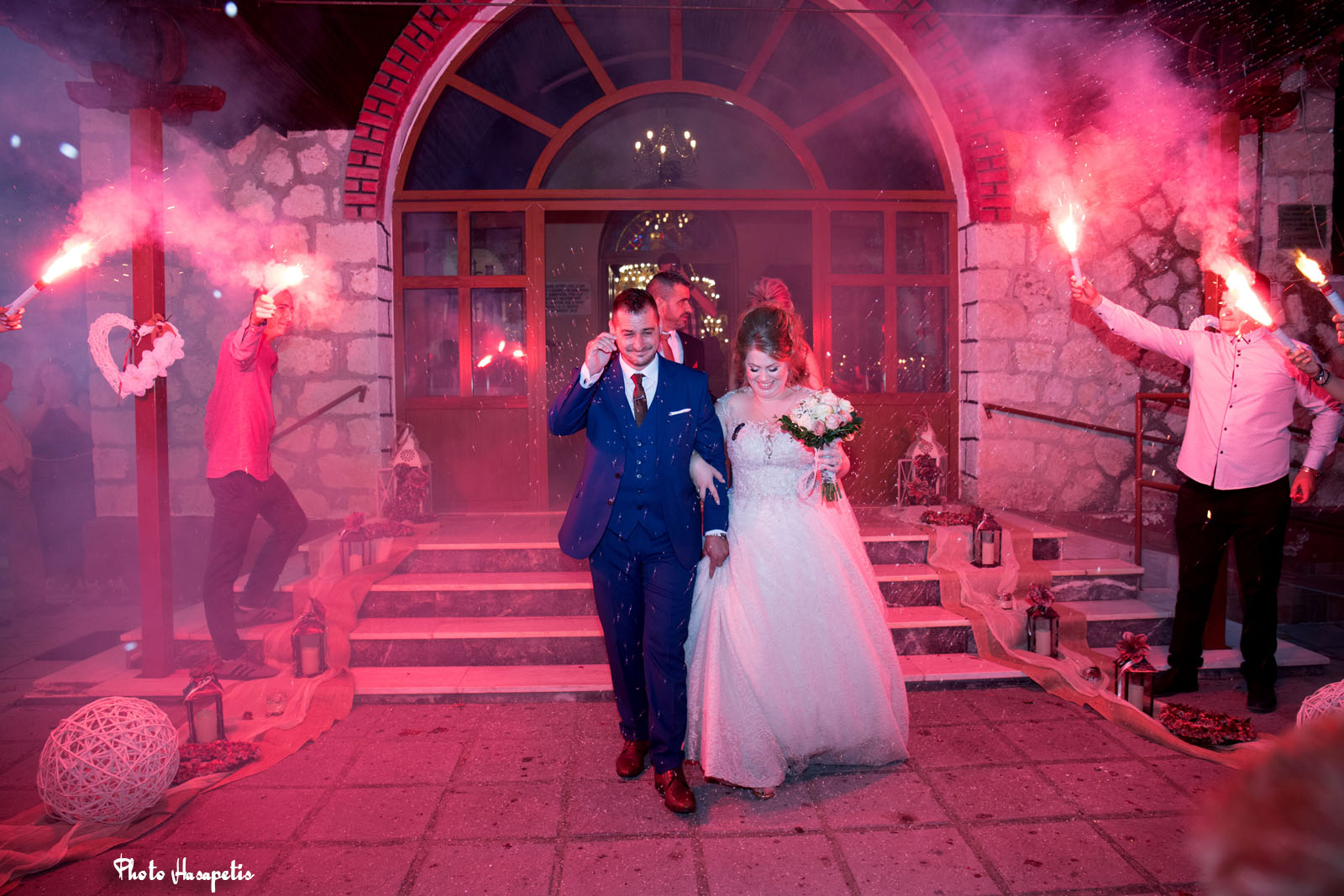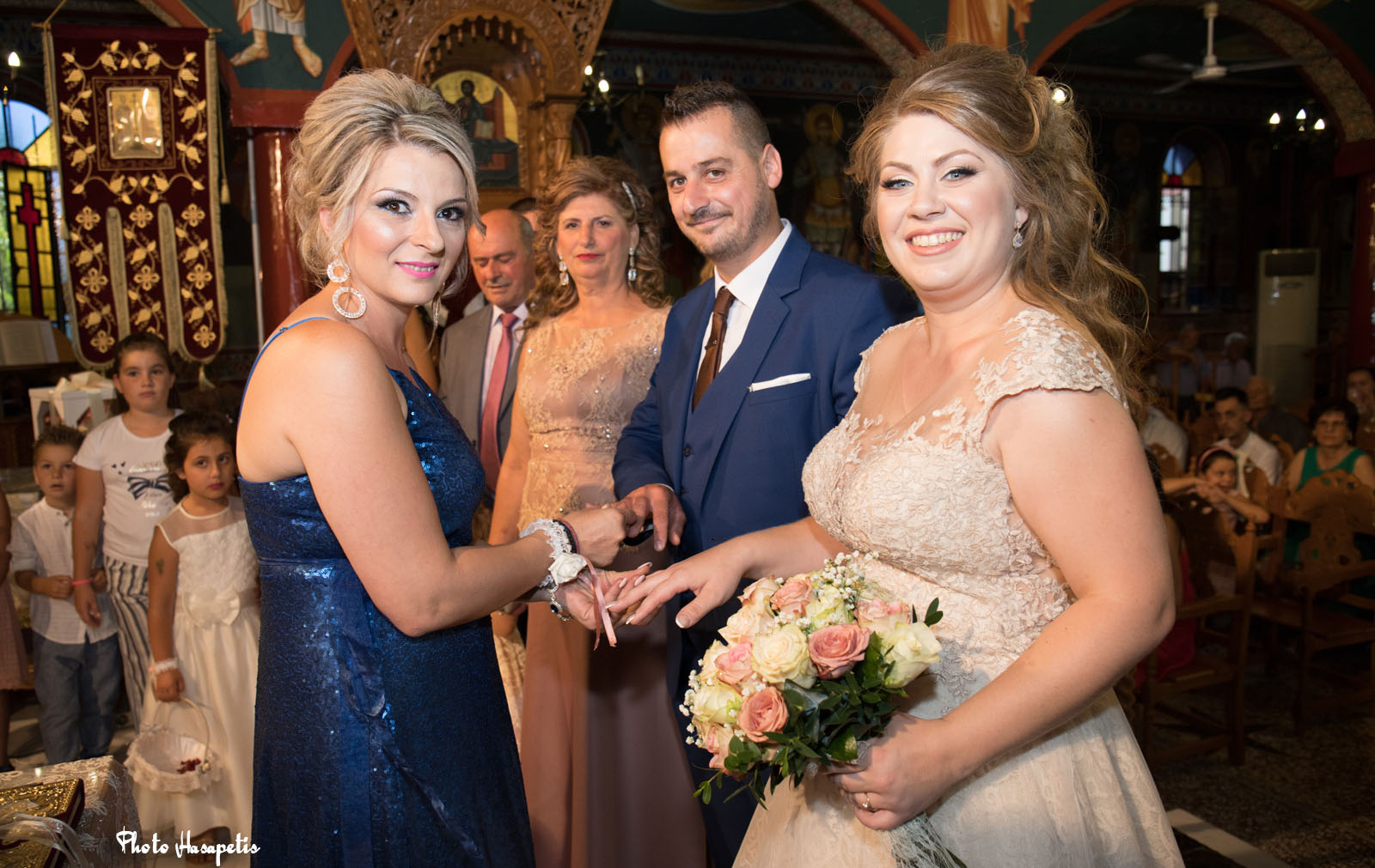 Κουμπάροι του ζευγαριού ο Κωνταντίνος Συρόπουλος και η Σοφία Χαμαλίδου.