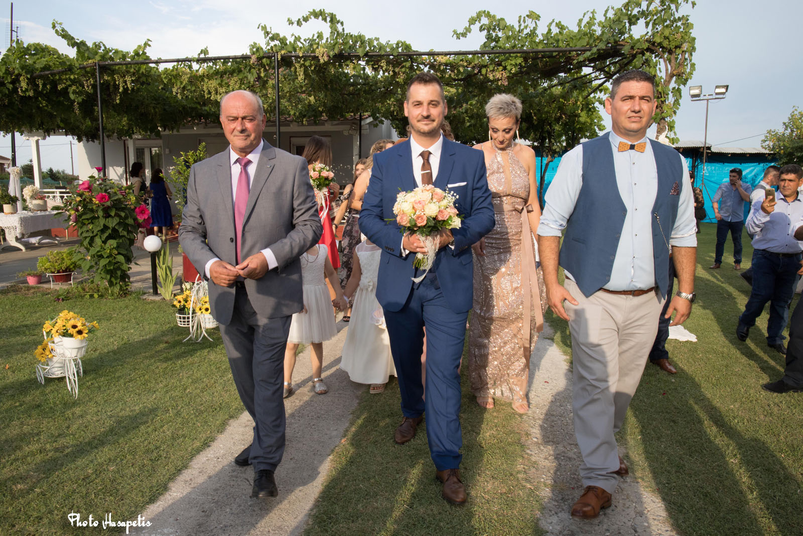 Η γαμήλια τελετή πραγματοποιήθηκε στον Ιερό Ναό Αγίων Κωνσταντίνου και Ελένης στον Λουτρό του δήμου Αλεξάνδρειας παρουσία συγγενών και φίλων.