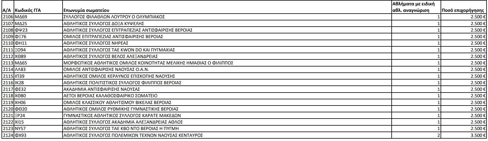 56 αθλητικές ομάδες – σωματεία του νομού Ημαθίας θα λάβουν οικονομική ενίσχυση η οποία ανέρχεται από 2.500 έως 5.500 ευρώ.