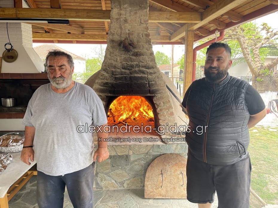 Το απόγευμα του Μεγάλου Σαββάτου, ο Νίκος, η οικογένεια και οι φίλοι του άναψαν τον παραδοσιακό ξυλόφουρνο.