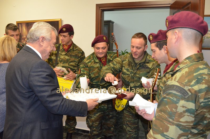 Το πρωί της Παρασκευής 22 Δεκεμβρίου ο δήμαρχος Αλεξάνδρειας Παναγιώτης Γκυρίνης δέχτηκε επίσκεψη των φαντάρων οι οποίοι του τραγούδησαν τα Χριστουγεννιάτικα κάλαντα.